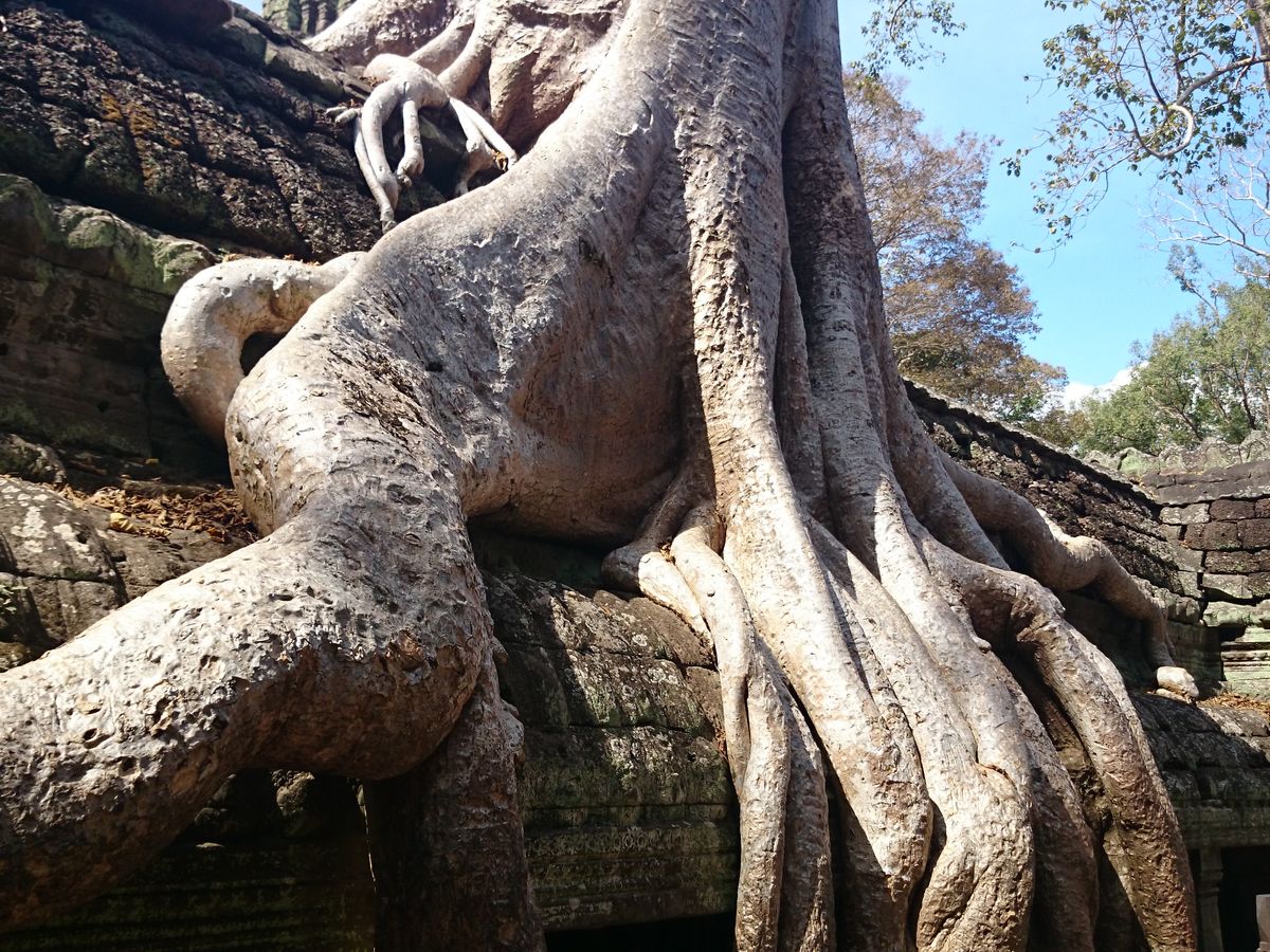 その後タプロームへと向かいました。映画「トゥームレイダー」の撮影地ということもあり、とても迫力あるガジュマルの木と遺跡でした。