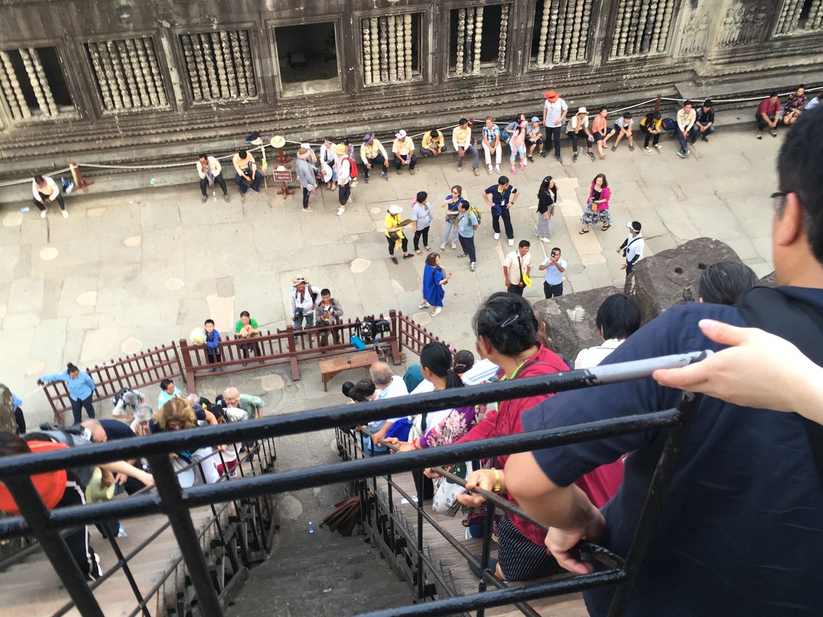 アンコールワットの第三回廊登り階段は、40分待ちでした。