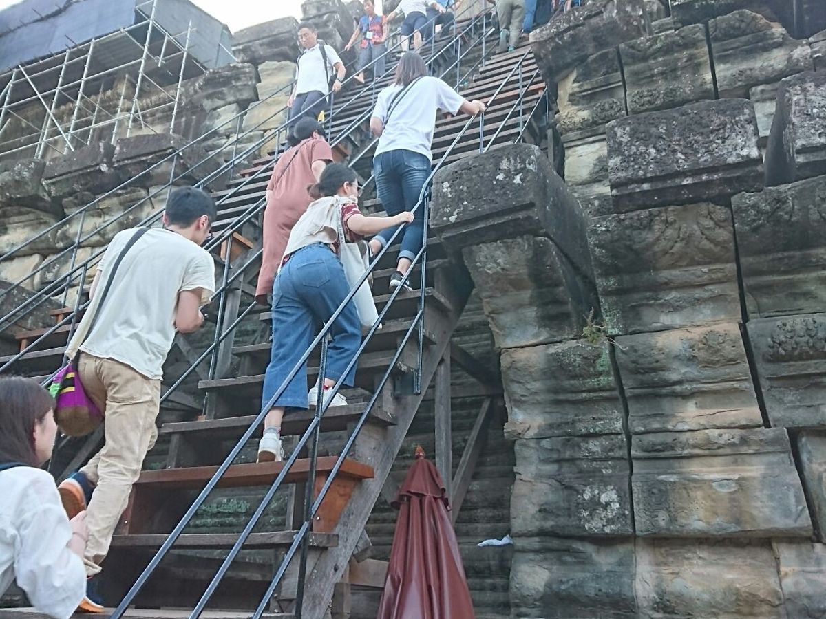 参加者20人くらいのためガイドさん一人で掌握が大変そうで、時間が押し押しでした。ワットの第一回廊でラーマーヤナ見れず、プノンバケン夕日もギリギリ日没に間に合いました。