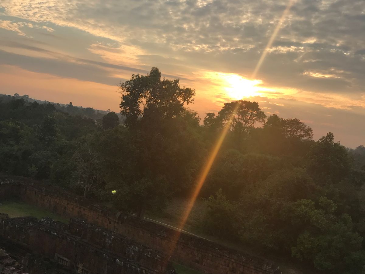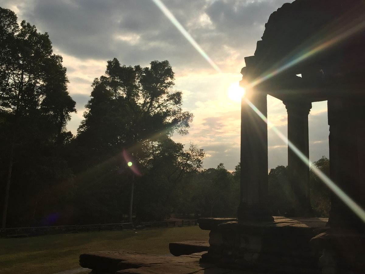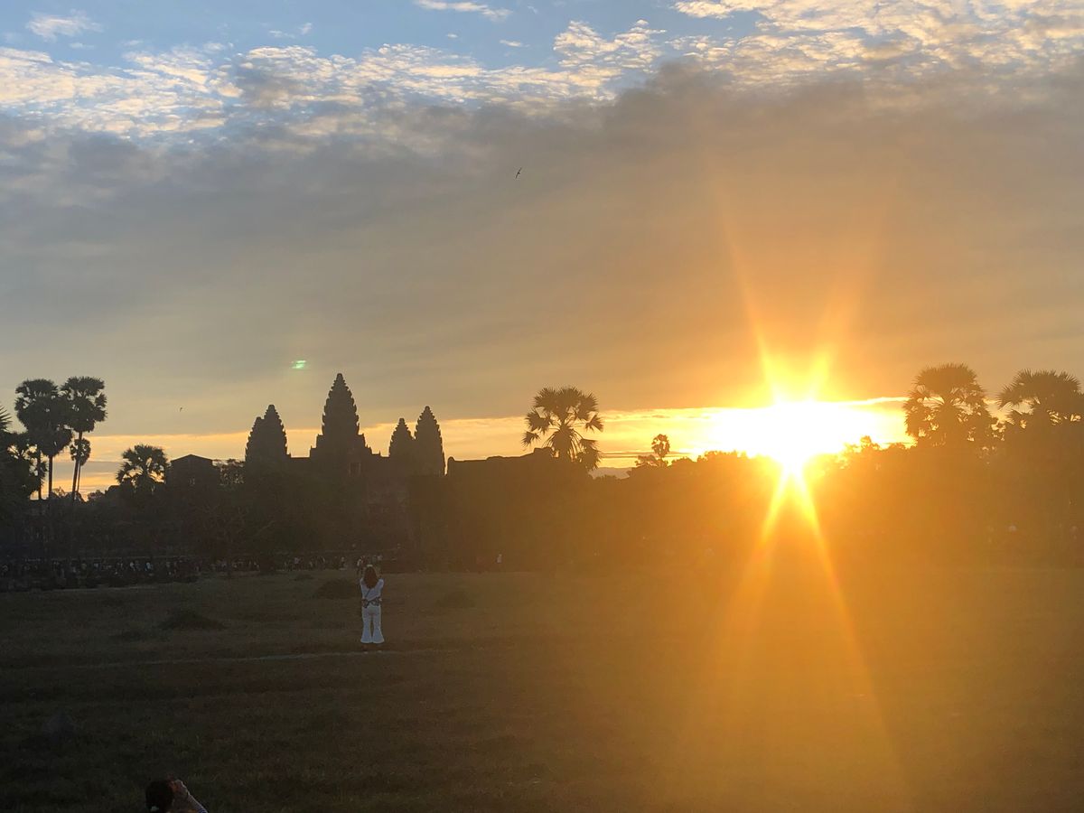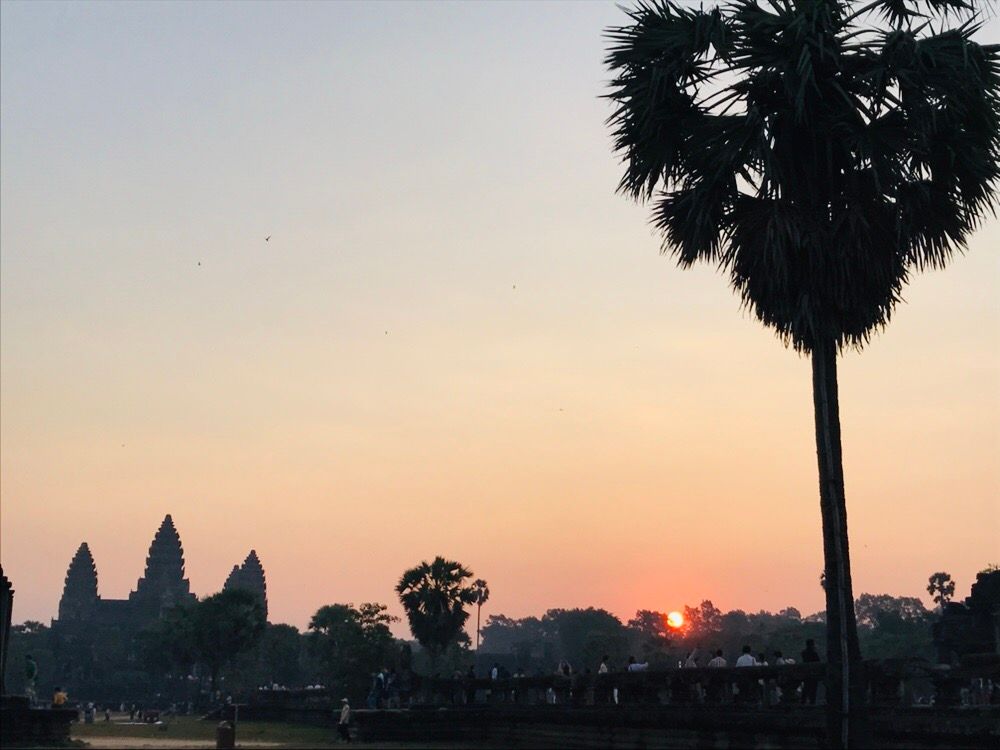 太陽とアンコールワットを一緒に見るとパワーがもらえて眠気もふっとんでしまいました