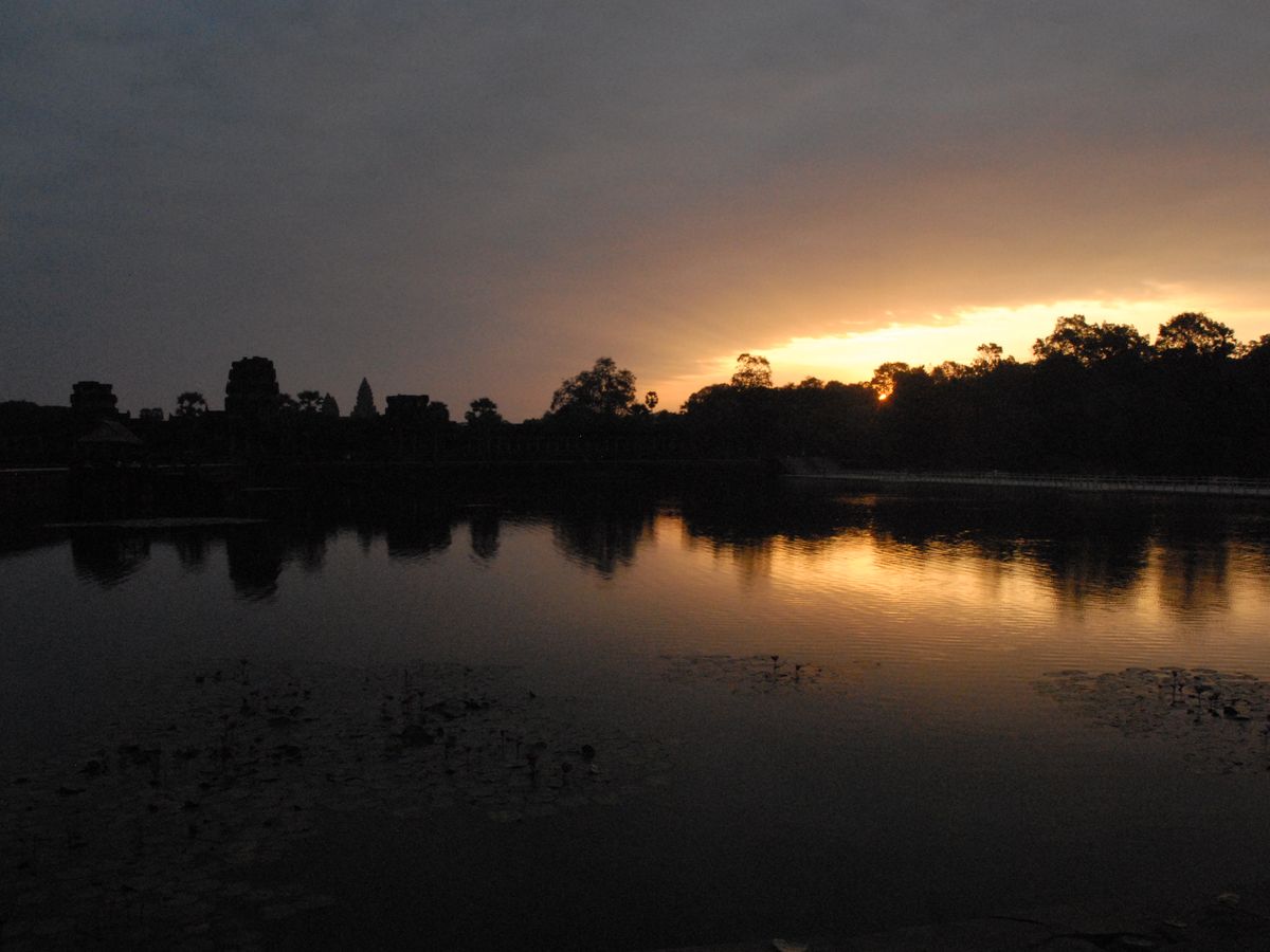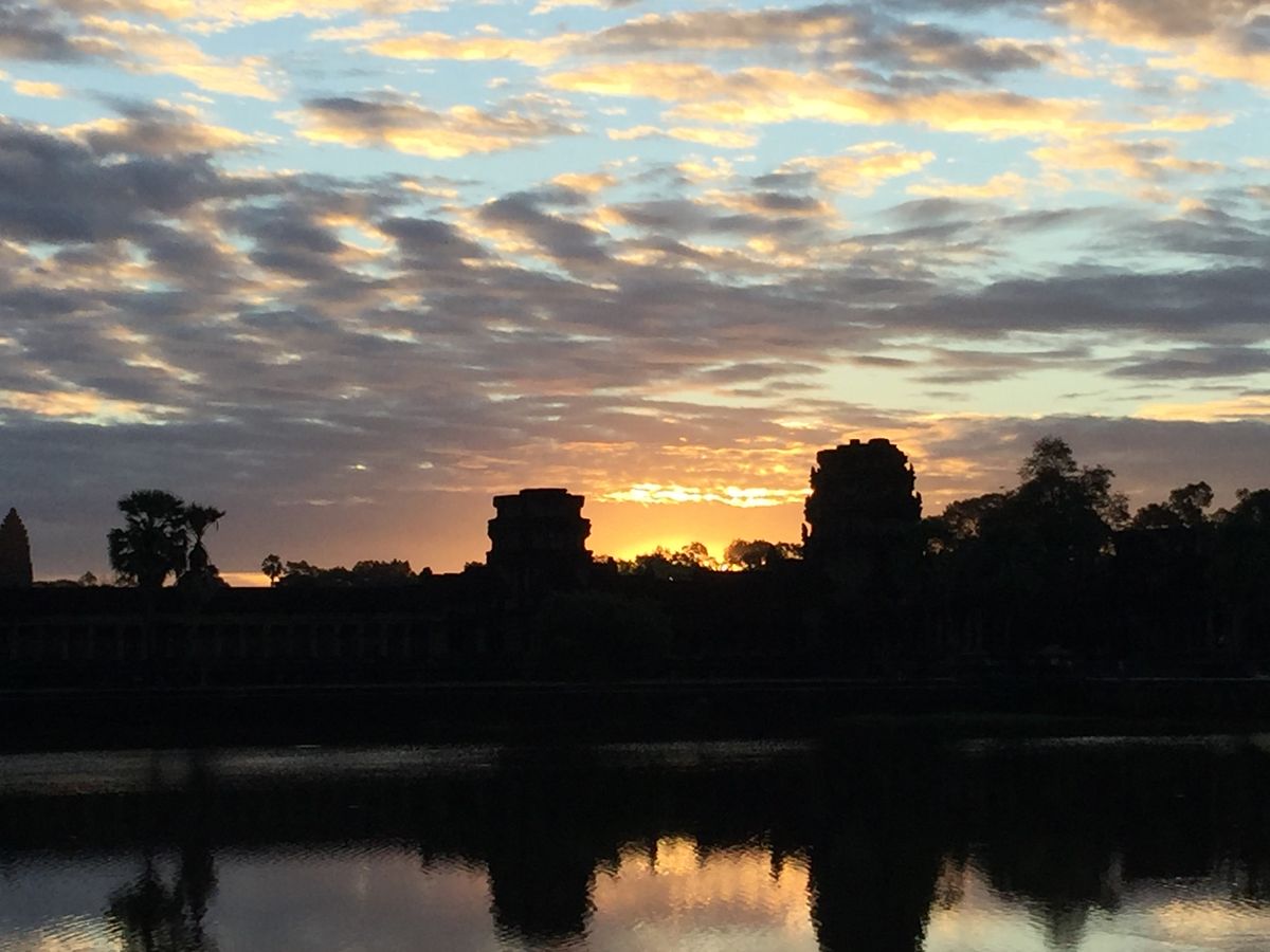 早朝から行った甲斐があり、アンコールワットの脇から登る朝日を見ることができました。