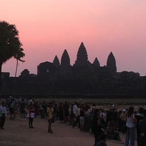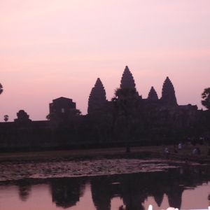 早朝のアンコールワットでは、既に撮影ポイントの池の回りは人で溢れてましたが、ガイドさんが一番前で写真を撮ってくれてすてきな1枚が出来ました。