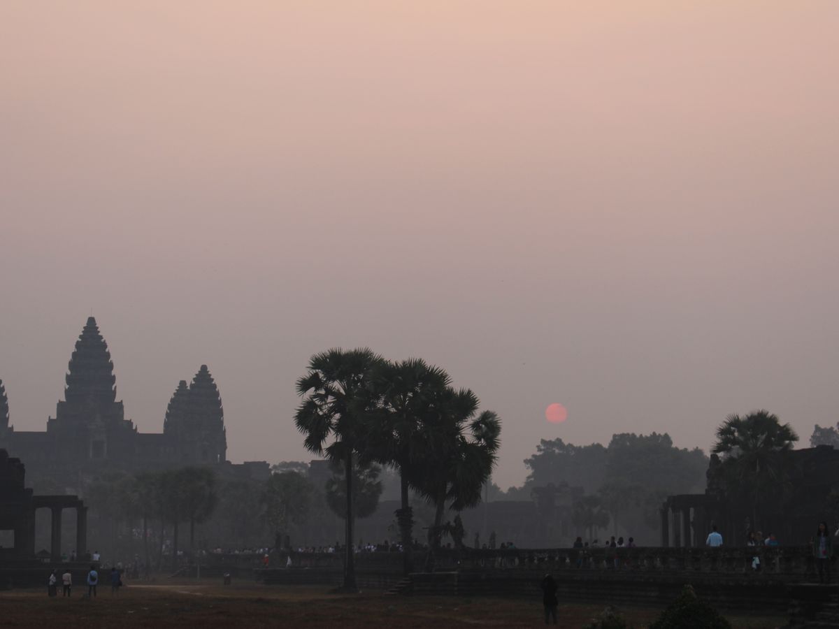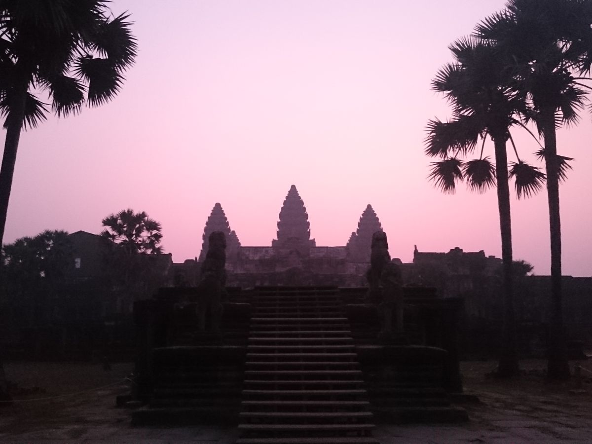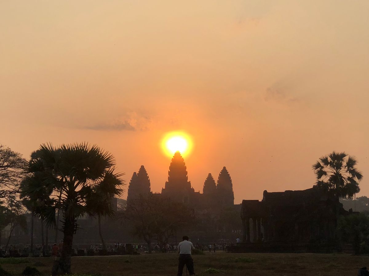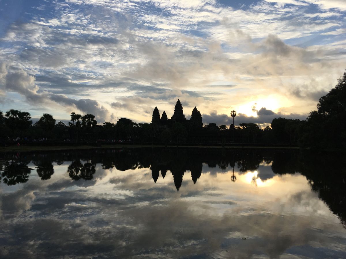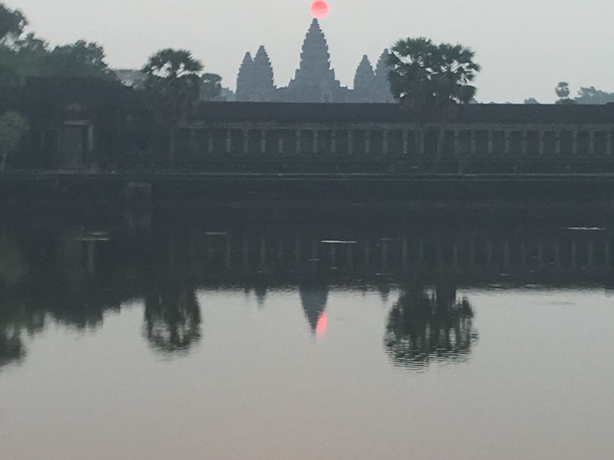 アンコールワットで見た日の出は、ヴァンニーさんがおすすめスポット(しかも人が少ないところ)を教えてくださって、バッチリ大きな太陽が登ってくるのをみれて感動です。
