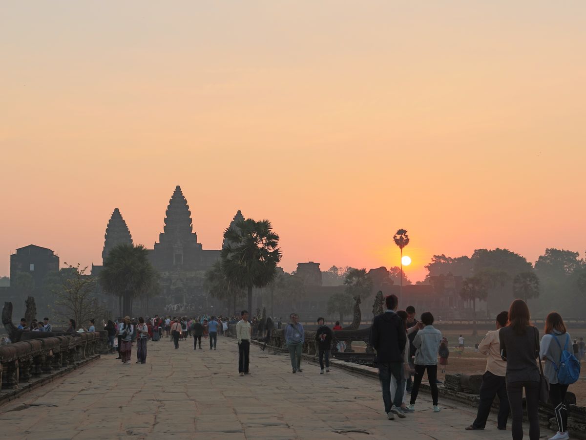 早朝から夜遅くまで、濃密なツアーです。私は一人旅でしたが、他にも5名ほど同様に一人旅の人がいて良かったです。朝日は霧でややかすんでいましたが見ることができました。春分の日、秋分の日はアンコールワットの真上に太陽がのぼると聞いて、是非その時期にまた来たいと思いました。とにかく歩くので履きやすい靴で観光した方が良いです。
