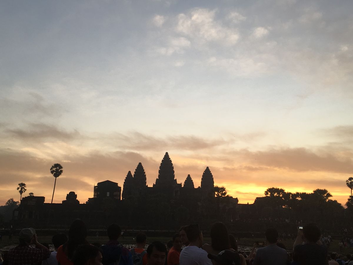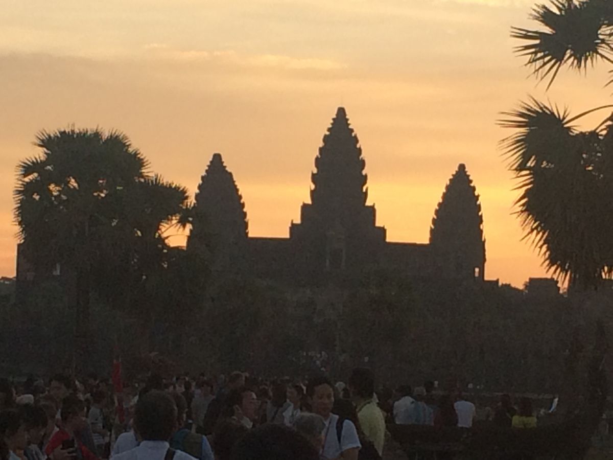 朝5時に出発して、夜9時にホテルに着きました。朝日鑑賞は、日の出前に集合がかかり、参道から鑑賞で、アンコールワットの遠く右側から日が昇るのを見るだけでした。夕日鑑賞も木が邪魔してきれいに見れませんでした。昼食は美味しく、夕食は不味かったです。何処も人は多くて、びっくりしました。10人以上の参加者で、慌ただしく回るツアーですが、暑い中やみくもに歩くより、ガイドさんの説明を聞きながら回れるので、朝日夕日の残念なところはありましたが、ツアー料金を考慮しても満足できたと思います。