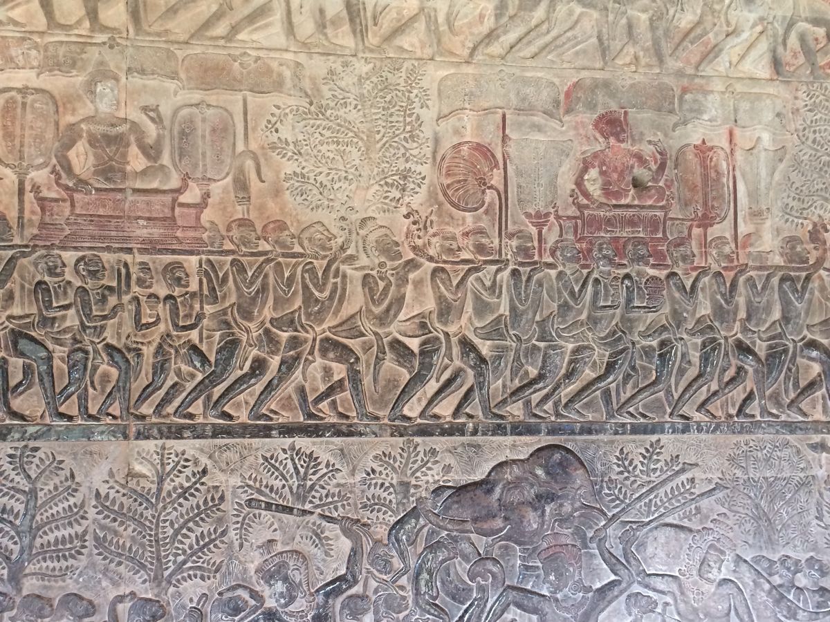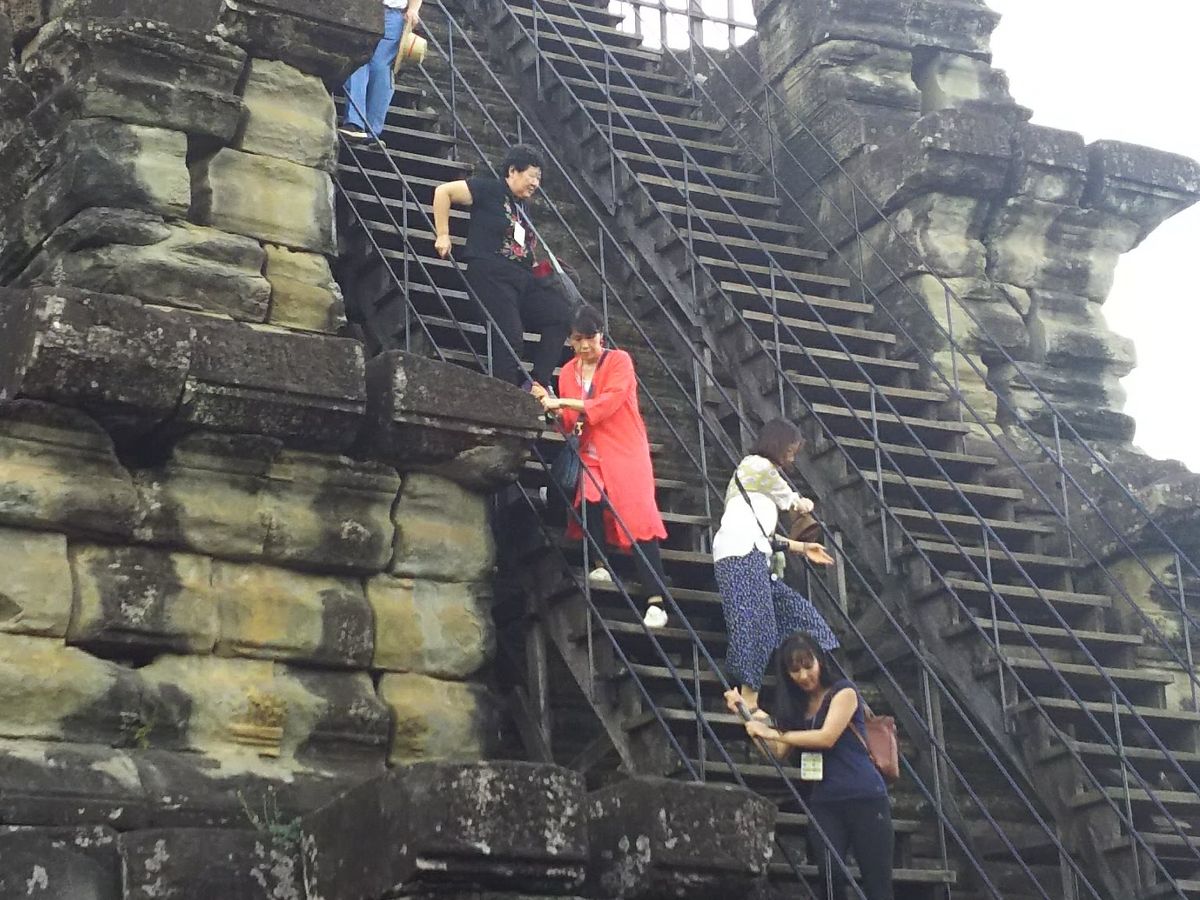 朝焼けの後、一度、ホテルに戻り、朝食後、バイヨン、アンコールワット、タプロームと遺跡巡り。合計2万歩、14~5km歩きますので、スニーカーが良いです。たいへんそうですが、Mr.Seaの解説のおかげで、皆さん遅れることもありませんてした。