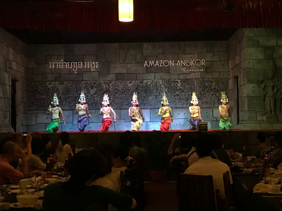 アプサラダンスを見ながら頂いたディナーは世界各国の観光客が集まって来ているようでした。初めてのシェムリアップ、このツアーに参加して良かったです。
