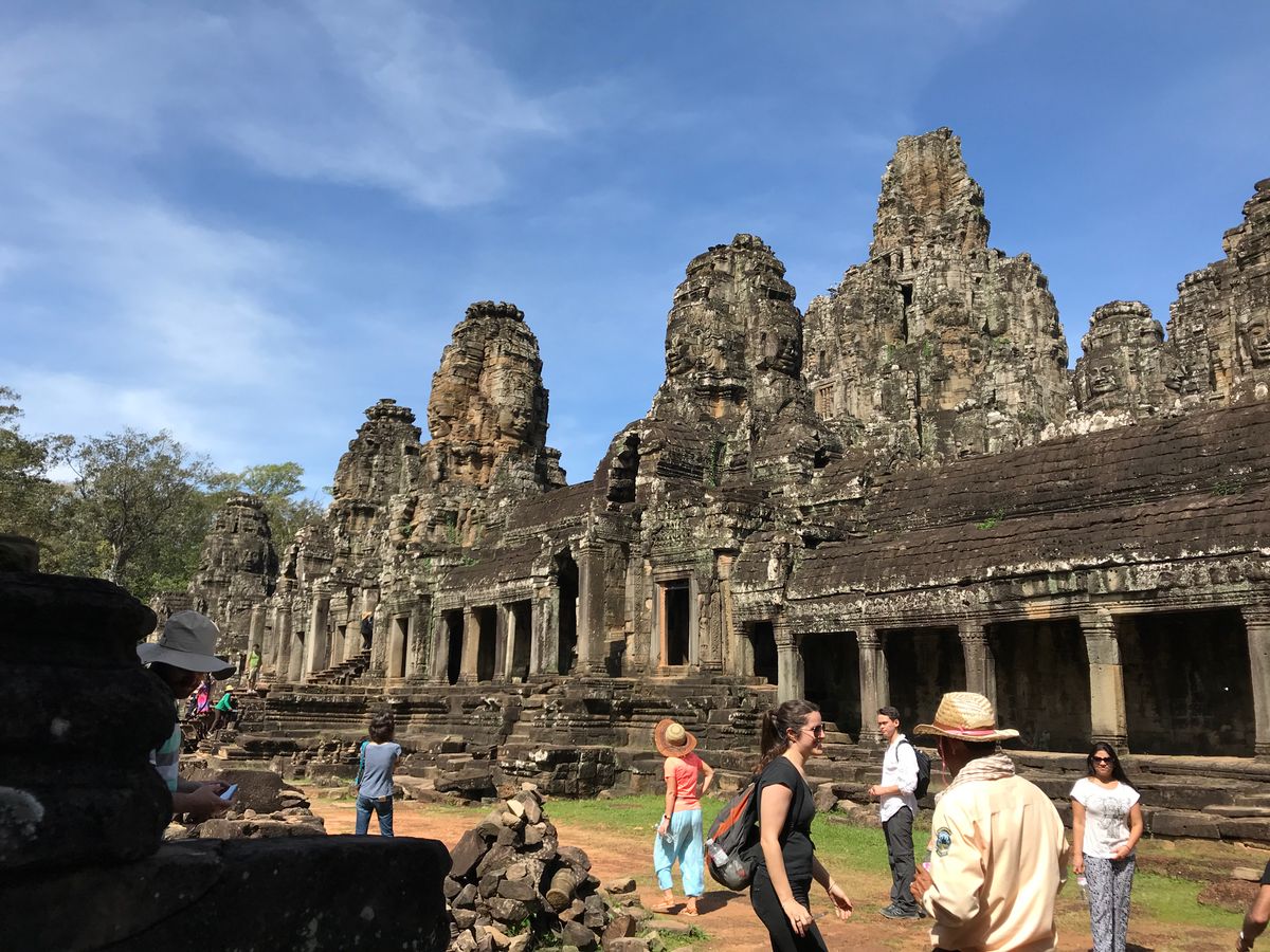 遺跡は、アンコールワット、アンコールトム、タプロムと巡りましたが、特に気に入ったのは、アンコールトムのバイヨンの微笑みです。四面の微笑みに癒されました。