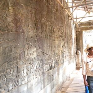 アンコールトムで壁画を手で触ってしまって注意されていた方がいたので、触りたい場合はガイドさんに触って大丈夫か聞いてからの方がいいと思います。