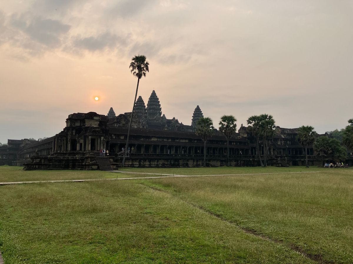 朝靄の中、ぽっかりと浮かんできた太陽を背景に姿を現したアンコールワットは大変美しく、忘れられない景色となりました。