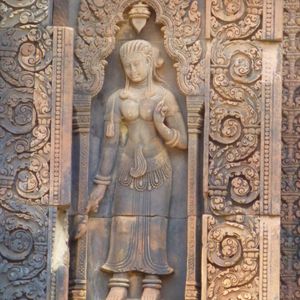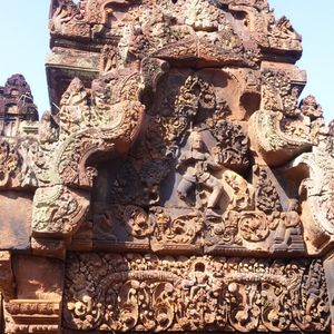 アンコール・ワット、アンコール・トムとは違った赤茶けたこじんまりとした遺跡ですが、彫の深い細かい彫刻と、東洋のモナリザと言われているデヴァター達が目を惹きます。