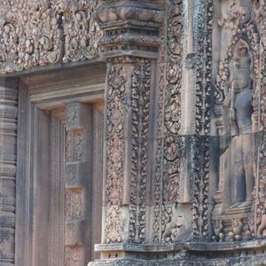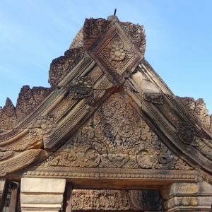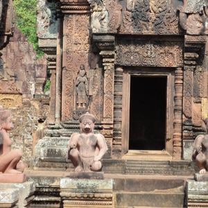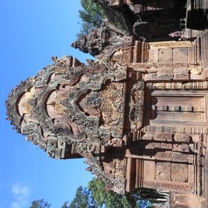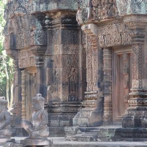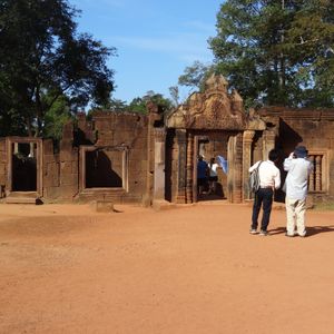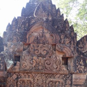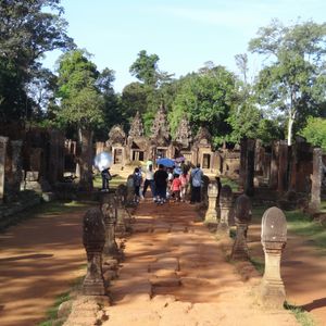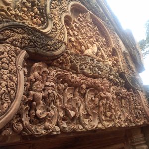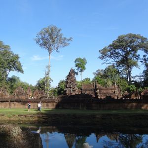 トゥクトゥク利用でしたが風が気持ちよく快適でした。ガイドさんが途中に見える郊外に住んでいる人たちの生活を詳しく解説してしてくれて面白かったです。バンテアイ・スレイは小さな遺跡ですので人が最も少ない午後2時に行ったのが正解でした。じっくり彫刻を見ることができました。ここの彫刻は他の遺跡と比べて非常に細かく彫られており、大変美しいです。ただもう少し近く東洋のモナリザのそばにいけたら…(遺跡を守るためには仕方が無いのですが)と思いました。