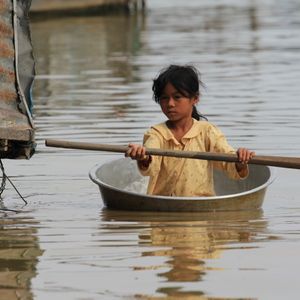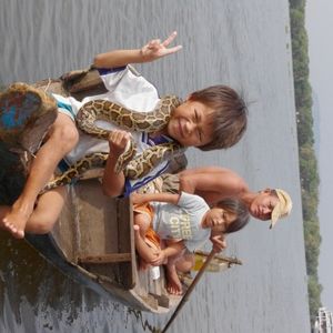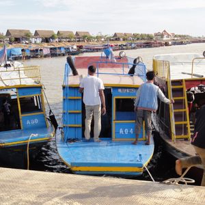 トンレサップ湖ですが、(古めのボートの場合)よく説明してくれるガイドさんなら、乗る時にガイドさんにピッタリくっついてなるべく近くに座れるようにすることをお勧めします。