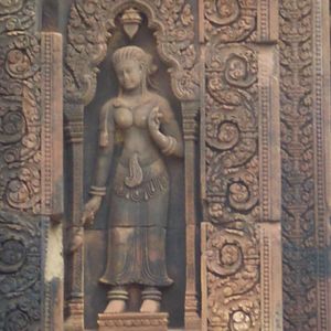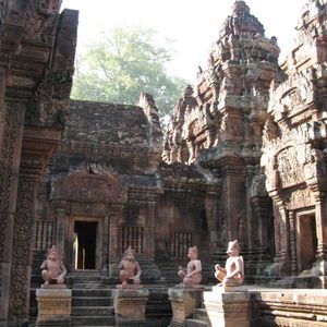 アンコール・ワットなどとはまた違った不思議な魅力を持った遺跡です。全体的に赤っぽいのが印象的で、「女の砦」と言われるようにどこか女性的な雰囲気が漂う素敵な場所でした。