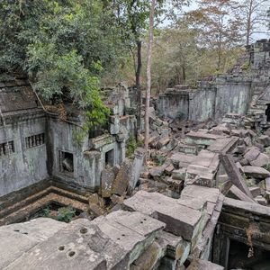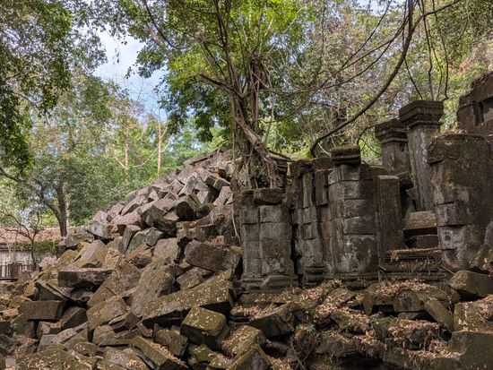 アンコールワットのボリューム感を見たあとでは物足りなさを感じる人もいるかも知れないが、静かに駆逐していく儚さを感じることができる遺跡である。
