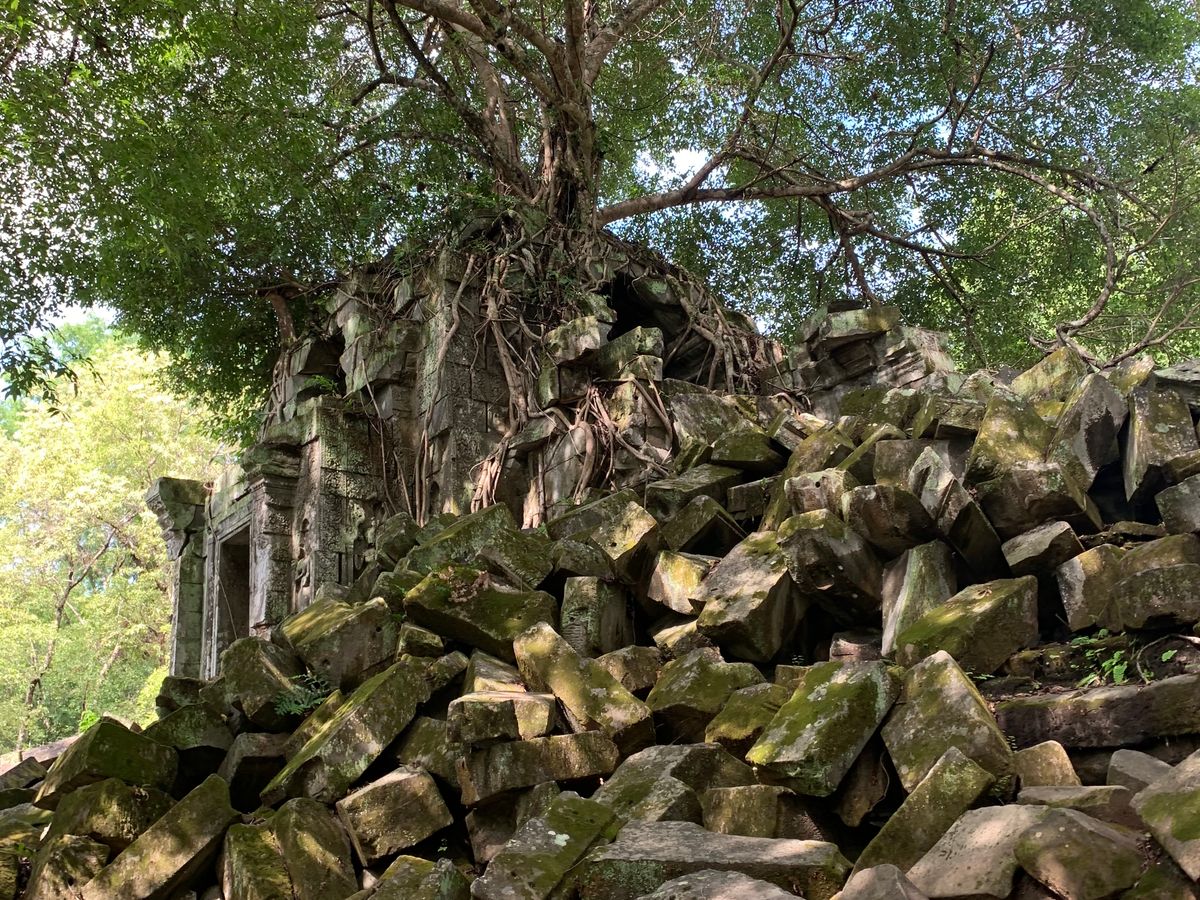 生い茂る緑と崩れかけた遺跡は、前日観光したアンコールワットなどとはまた違った魅力があります。