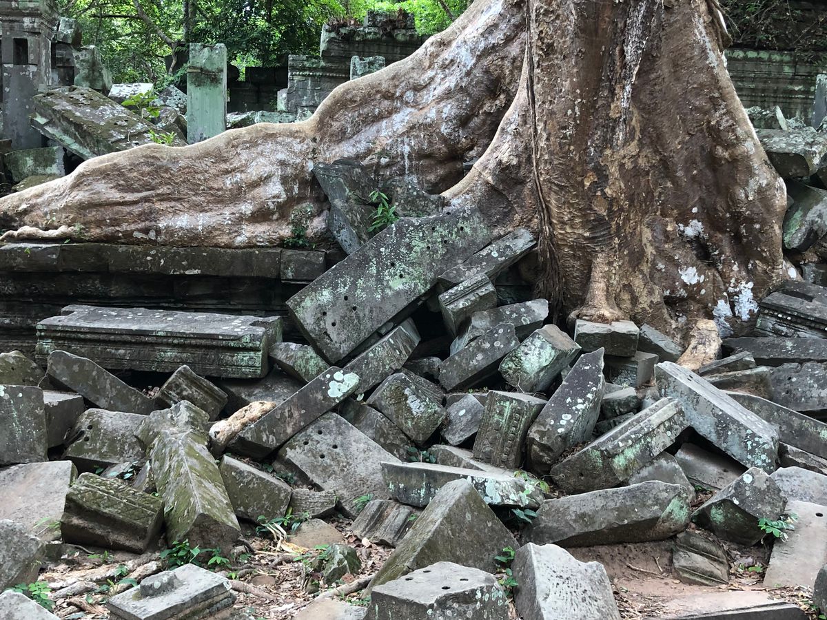 ベンメリア遺跡へは市内から約1時間10分で到着しました。森なのでアンコールワットよりは暑くないですが5月はとても暑いです。お水を買う場所も少ないので多めに持っていくと良いです。ベンメリア遺跡は修復の予定がないそうで、また台風があったら崩れてしまう可能性があります。行ける機会があればおすすめの場所です。ラピュタの世界のようでまた映画を見たくなりました。ガイドさんもいろいろと詳しく教えてくれました。ありがとうございました。