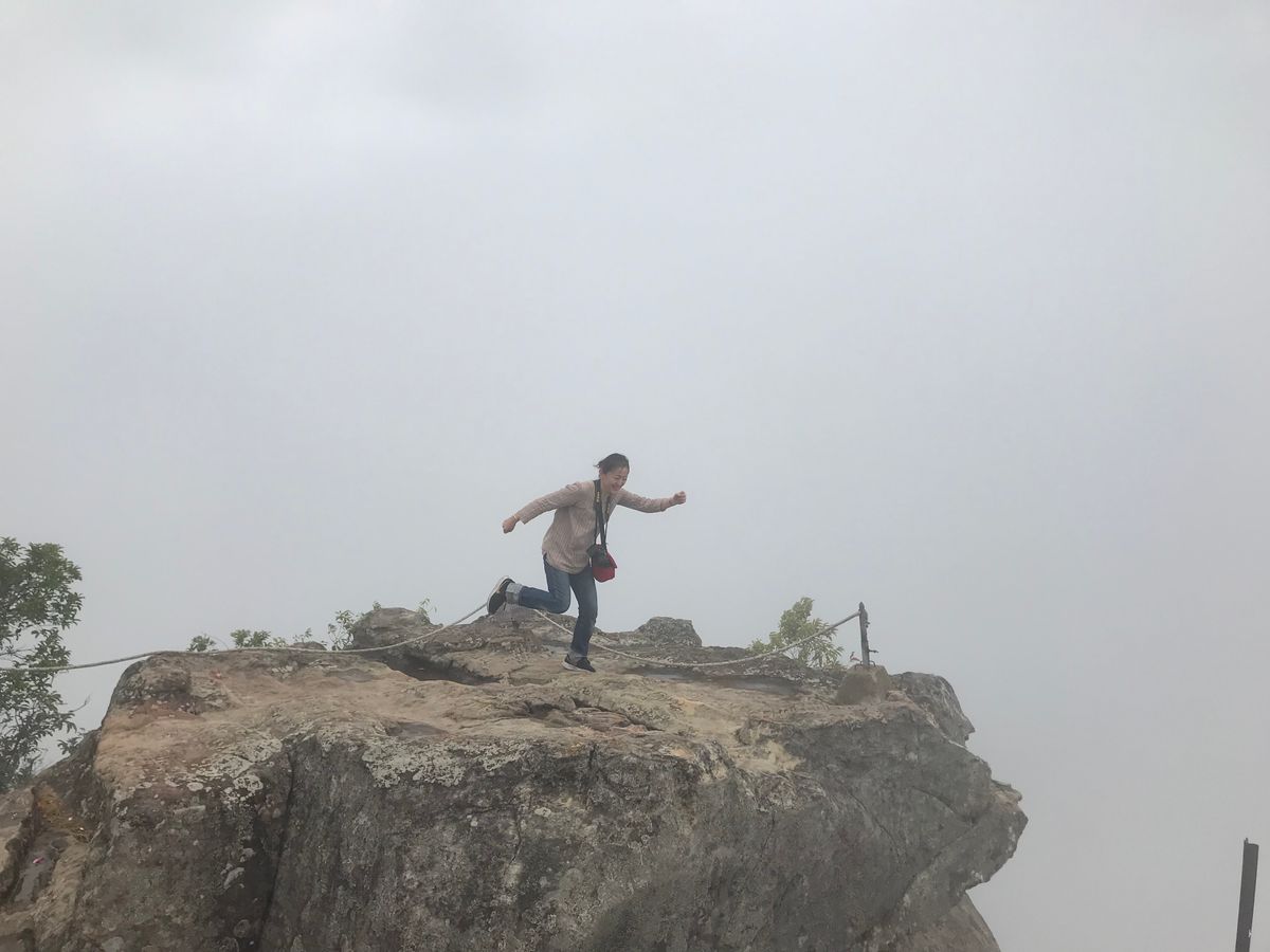 プレアビヒア登頂手前の4WD乗車、荷台は風を感じられてとても気持ち良い!かなり揺れるので自信がない方は車内座席にも座れますので(【貸切】ですからね)そちらを選んでもいいかも。駐車場から頂上までは、とてもなだらかな坂道。ただ、木々が少なく日陰がほとんど無いので日傘などあればとても役立ちます。インスタなどでもよくあげられている絶壁部ですが、実際行くと足元は本当に狭い!気をつけて下さいね。