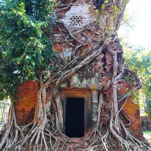 太い木々が遺跡を侵食した様は異空間の様。ガイドさん曰く、世界遺産登録後は修復されて、侵食した樹木と崩れた遺跡の今の雰囲気が少し変わるかもと言っていました。