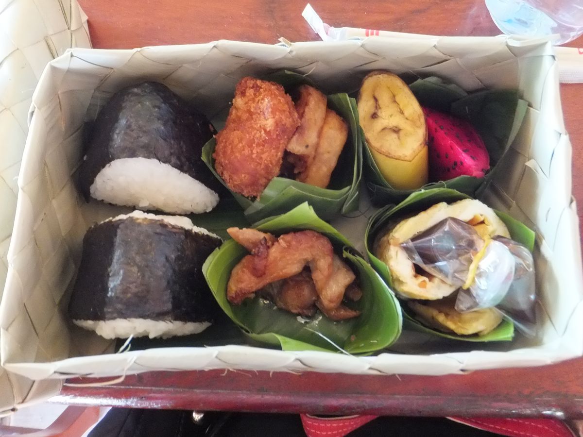 山を降りてから、ランチ。味も抜群のかごのケースのお弁当つき。ツアーが一緒だったご家族とお店でランチでした。