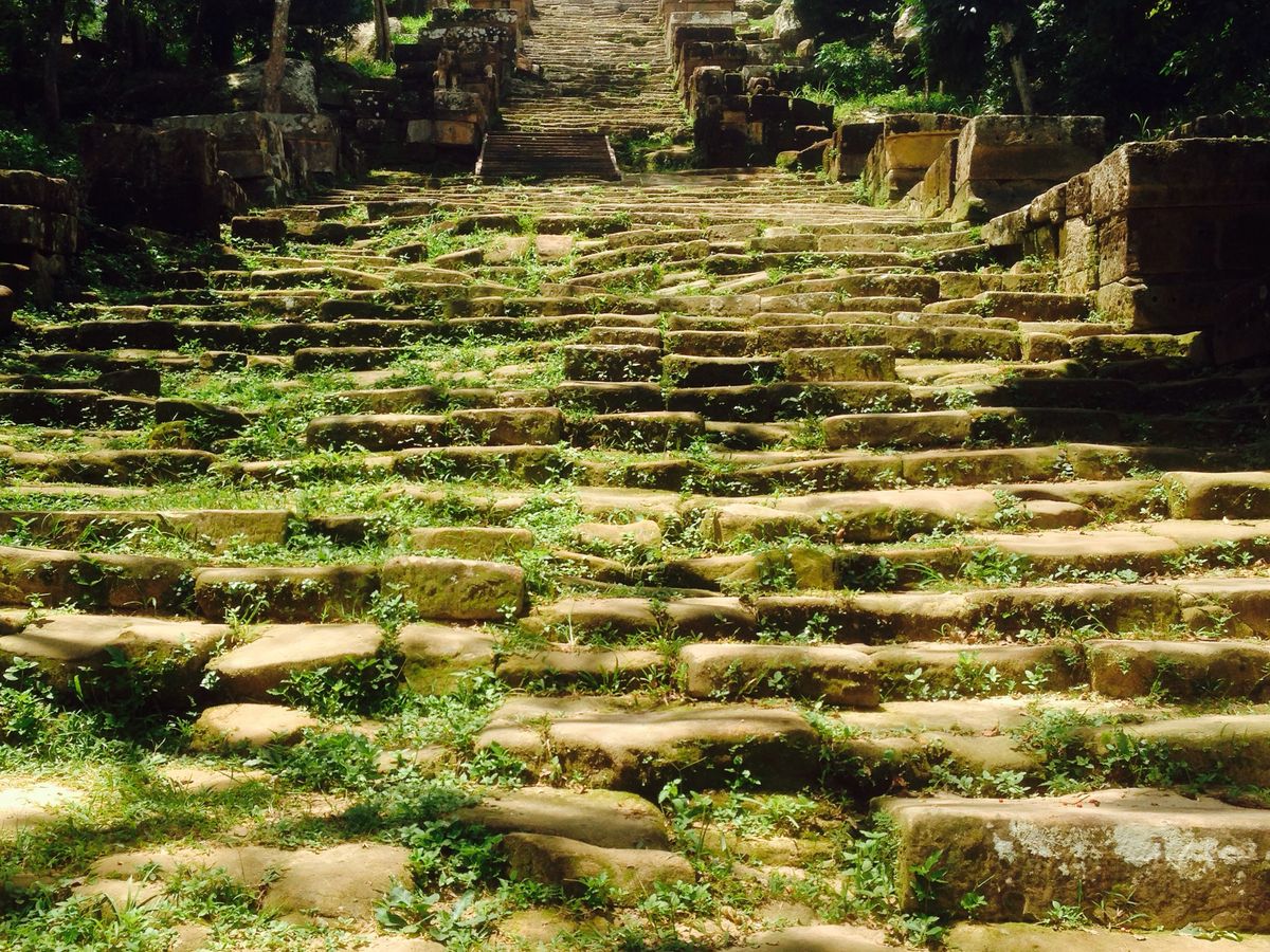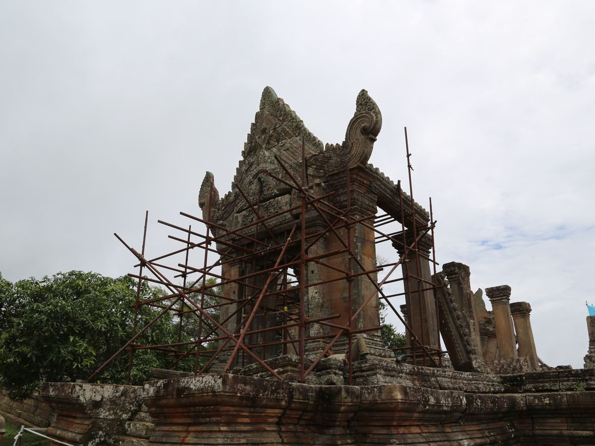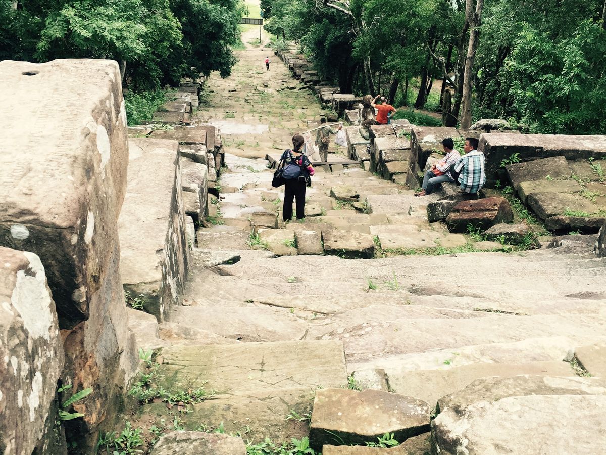 行った時は天候があまり良くなく、遺跡も霧に包まれており見通しが良くなく「雨季だから、仕方ないなあ」と思っていたのですが、山頂に到着して天候が回復傾向になり、遺跡もきれいに見え、山頂からも見渡し良く最高でした。まだ観光客はそれほど多くない場所なので、その点もおススメです。一方、遺跡に行くまでの山道でカンボジア軍が住んでいるところを通るのですが、銃を構えている兵士もいたので、通過するのに少々緊張しました。