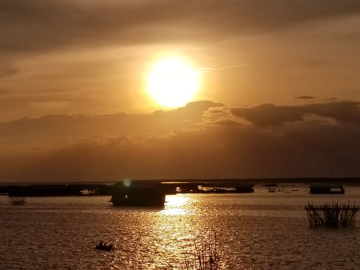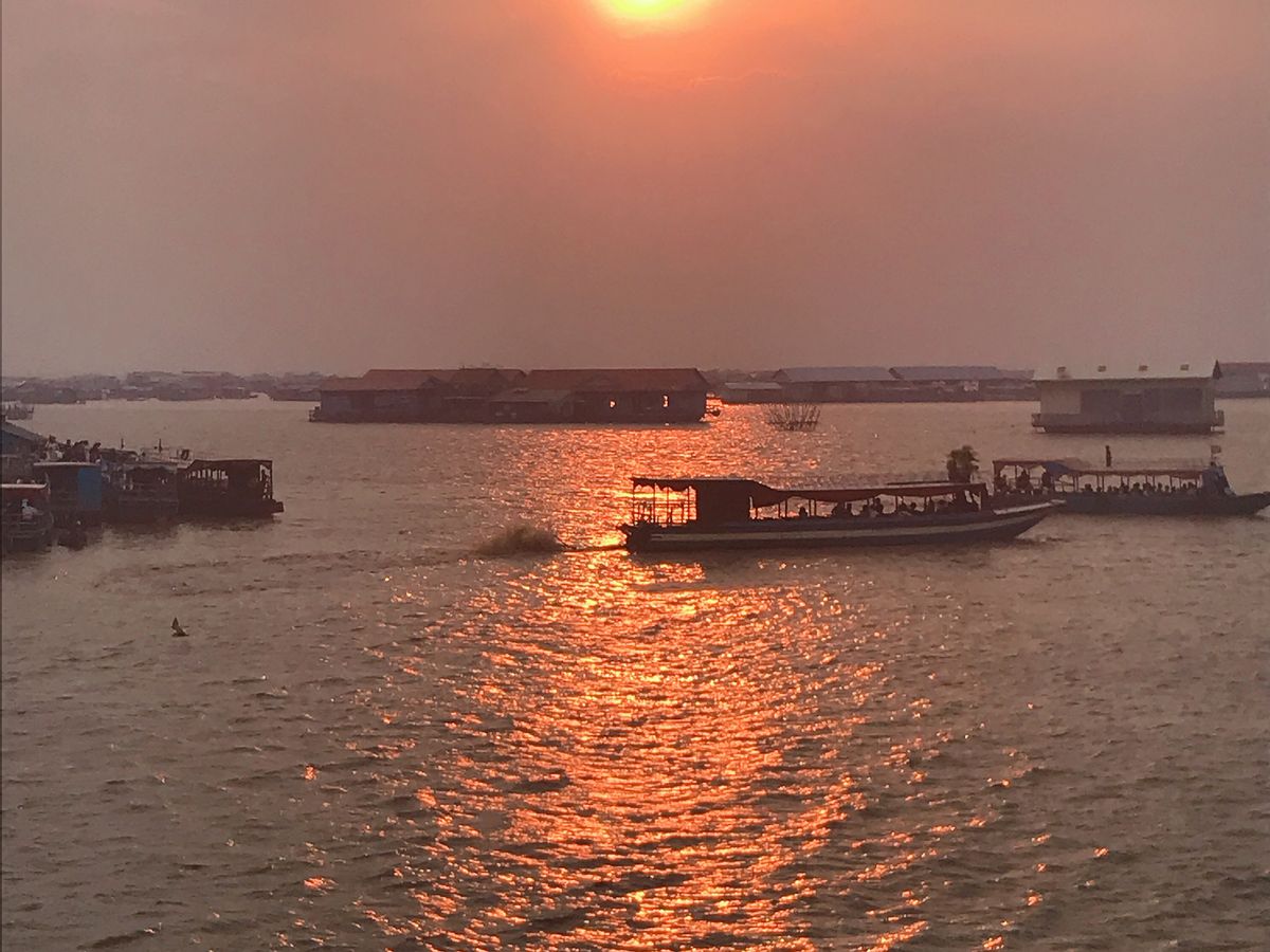 半日のツアーで、あまり期待もしていなかったのですが、湖畔に沈む夕日、琵琶湖の数倍のトンレサップ湖の広大さに感動しました