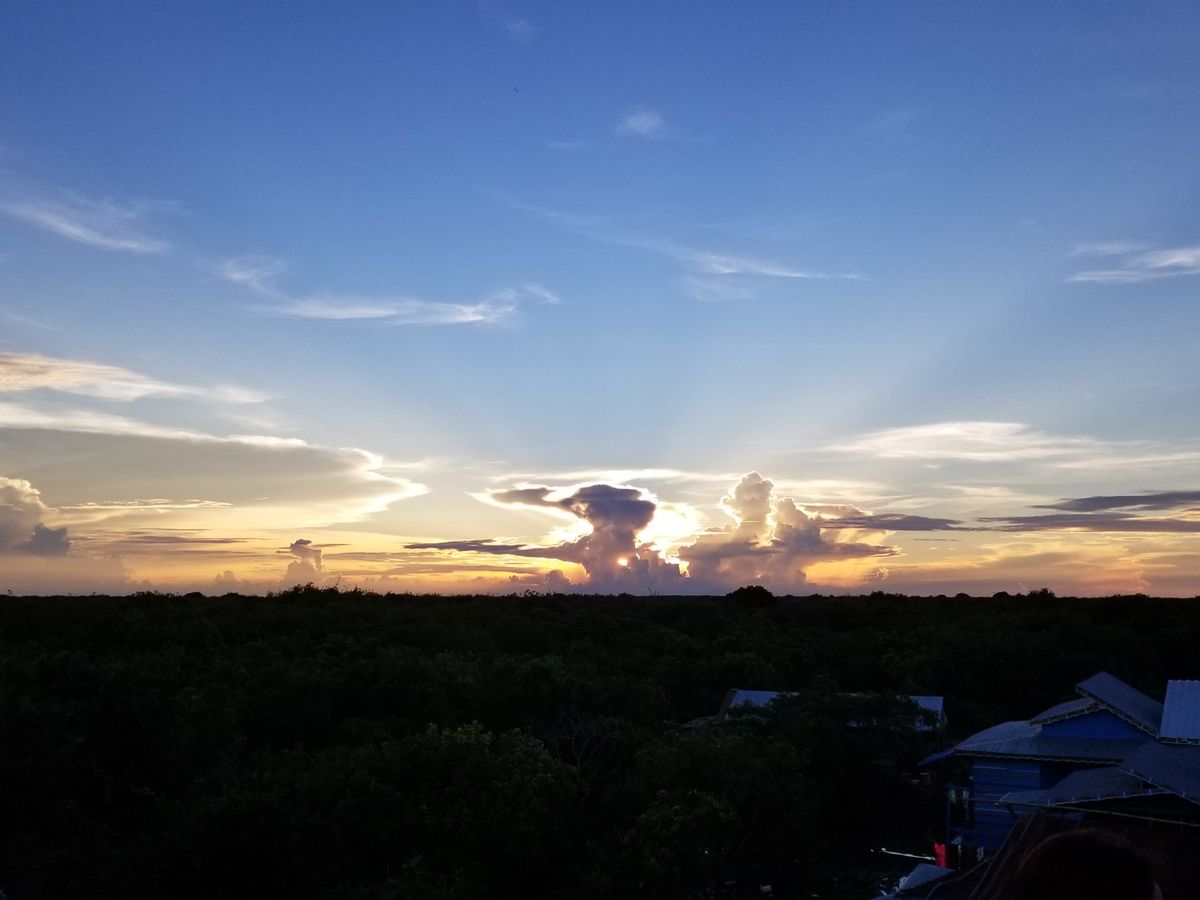 トンレサップ湖からの夕日はいかがでしたか?雨季の始まったころの5月のご参加ですので
