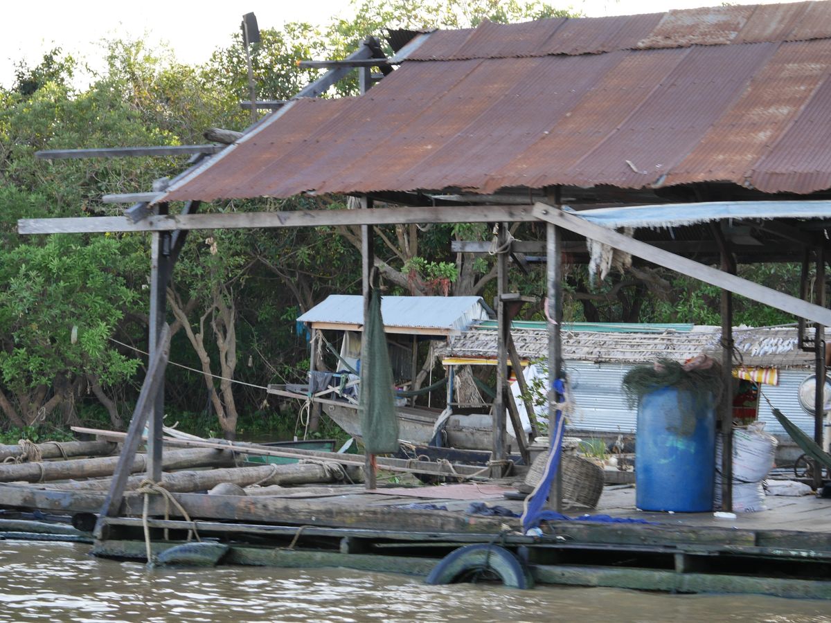 水上村についてはモーターボートに乗ってクルーズをしながら、遠目で流してみるという感じです。小舟に乗って魚釣りをしている様子や学校や商店、村人の普段の暮らしを見られました。天気が悪く湖が荒れていたため、土産物店兼レストランのようなところ(これも水上です)でモーターボートを降り夕日を待ちました。夕日は見られそうにないので、ガイドさんに早めに切り上げてほしい事を伝え、予定より早くホテルに帰りました。