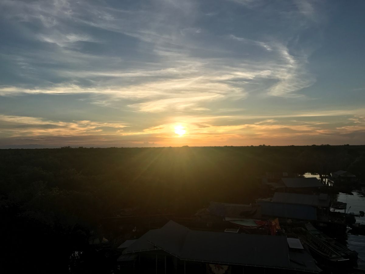 海かと思うほどの広大なトンレサップ湖に沈む夕日を見ていると