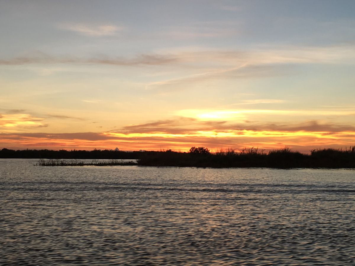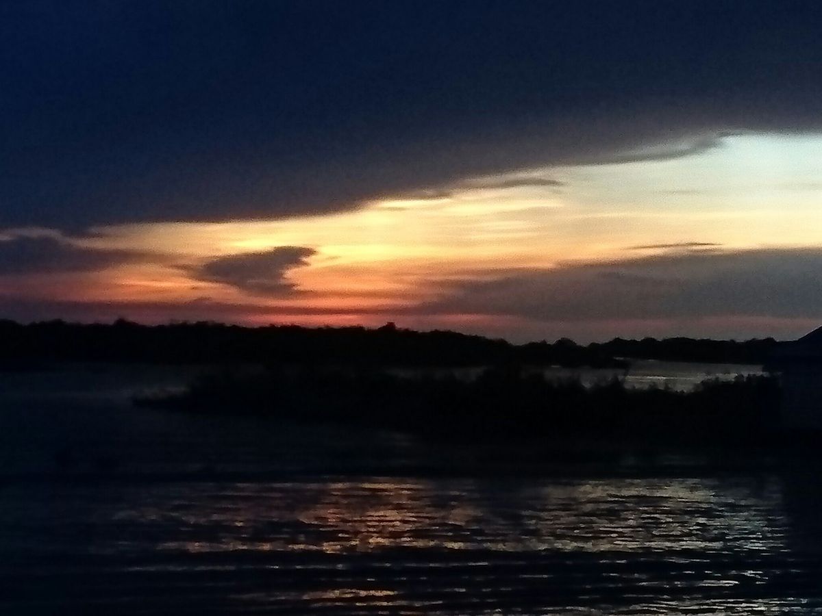 夕陽を見るためにボートで湖を進みましたが、残念ながら夕陽鑑賞ではなく雷鑑賞となってしまいました。