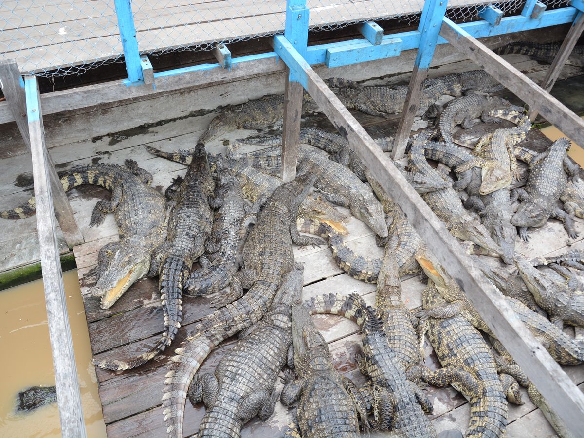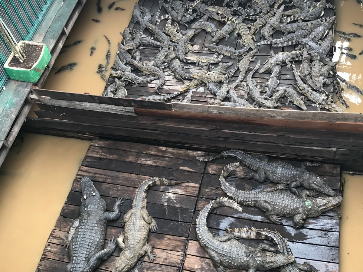ゆっくりしたボートでノンビリと景色を眺めて向かった先で降りたらワニがたっくさん!