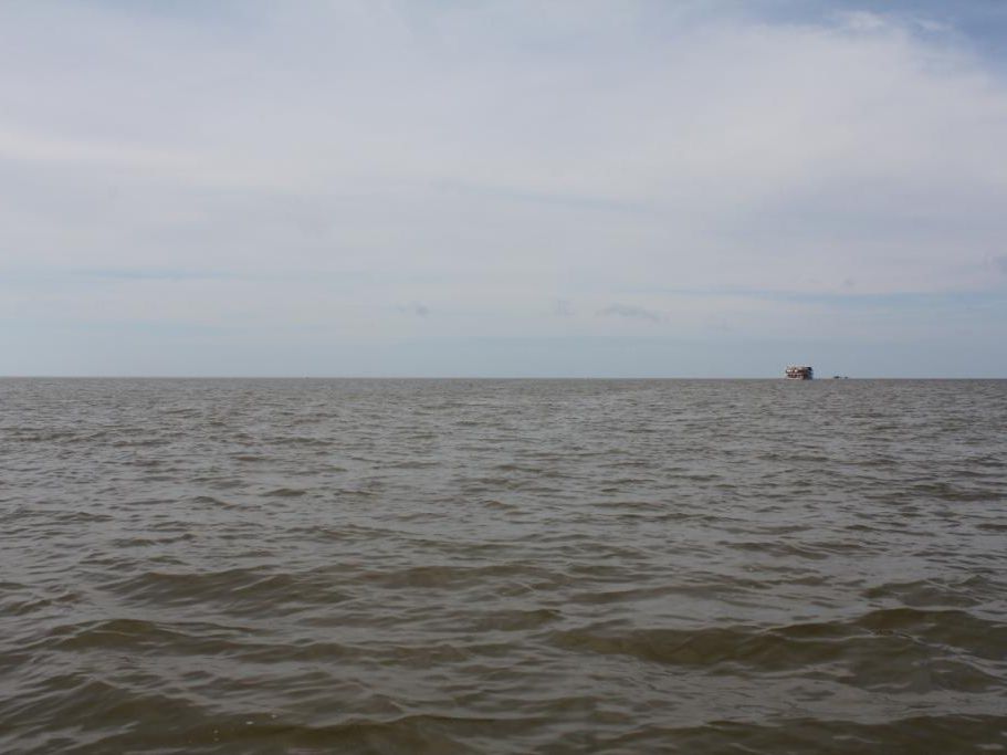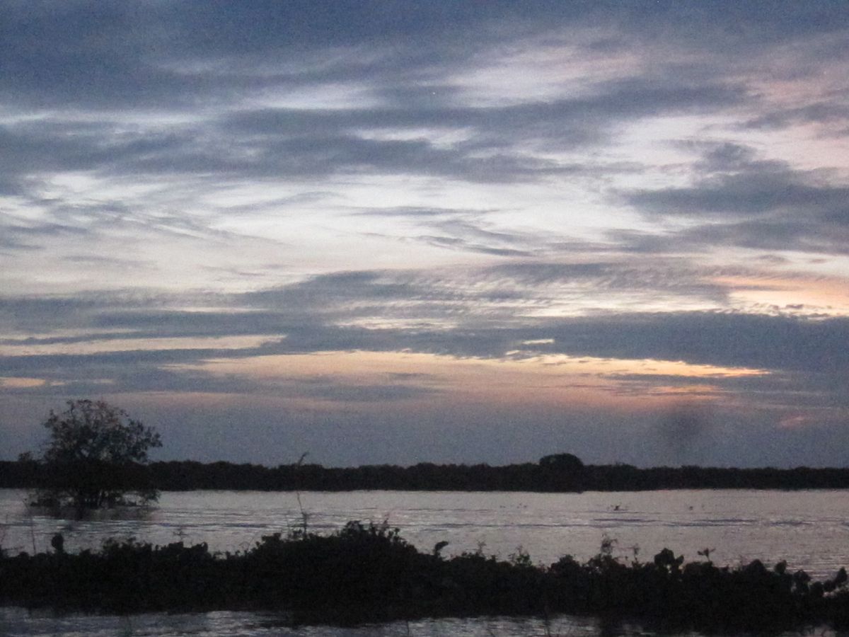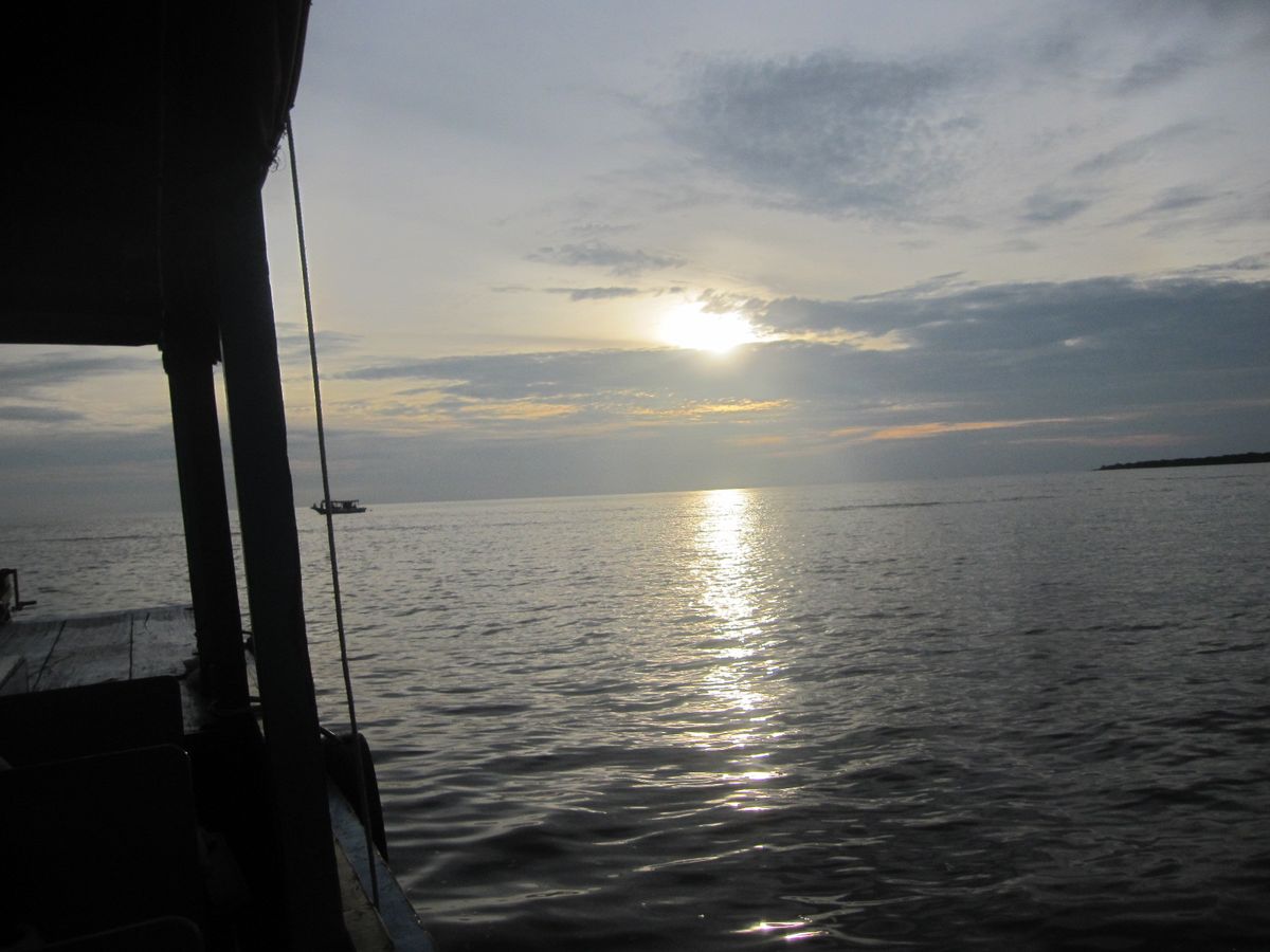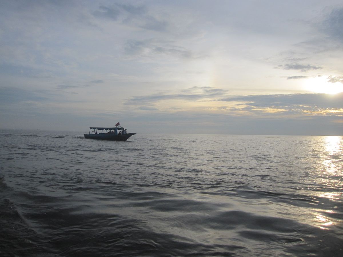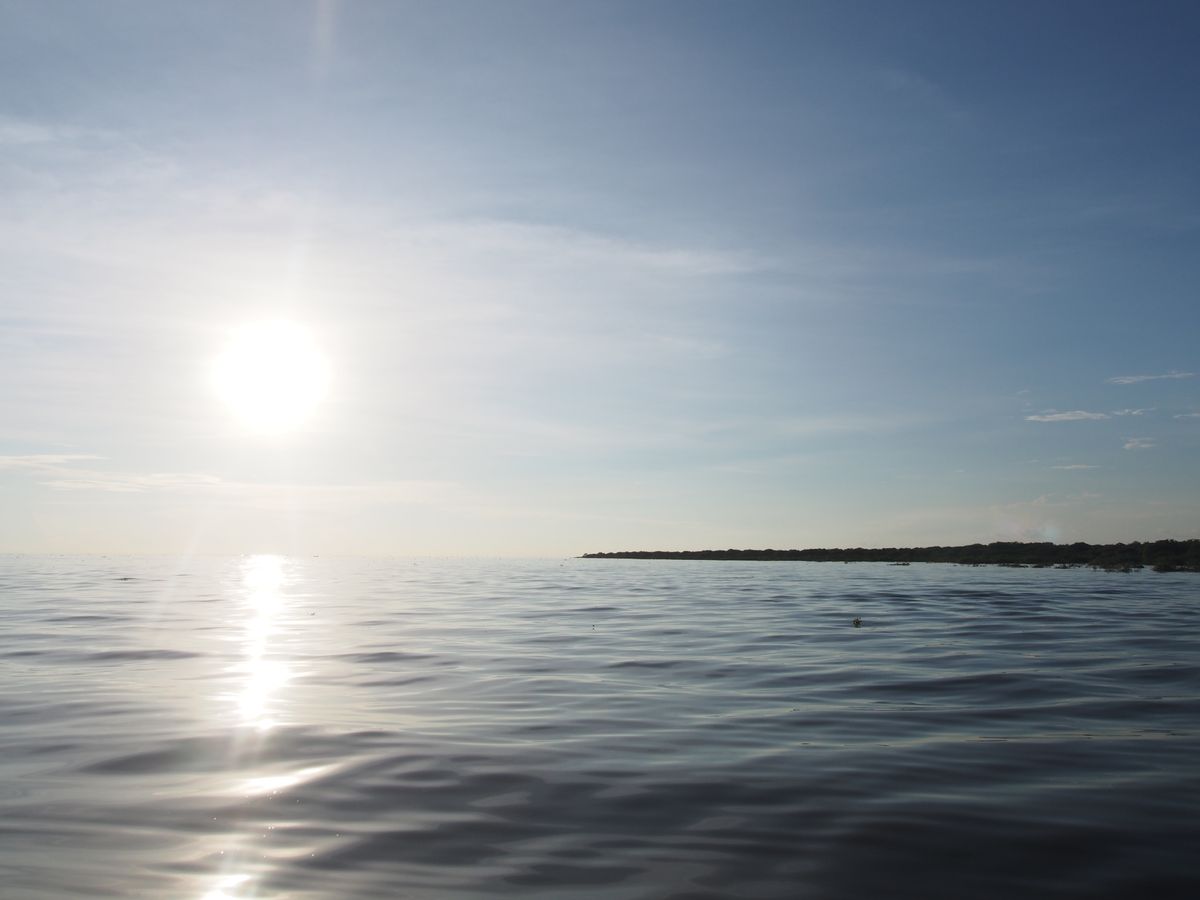 トンレサップ湖は,雨期終盤ということで,水量は申し分なし。夕日鑑賞ポイントまでの船の上,360°水平線が見えました。