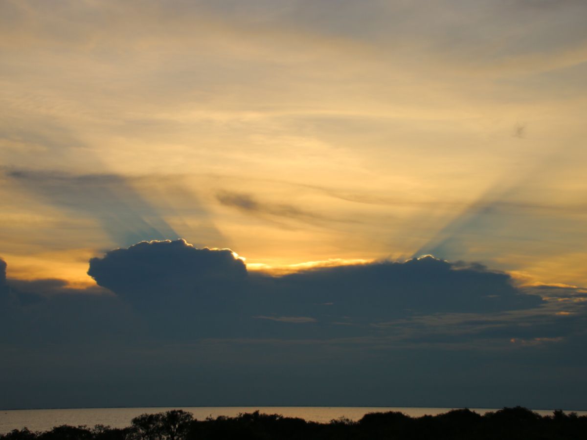 時期は10月なので、雨期の終わり掛けで正直雨が降らないか心配でしたがきれいな夕日が見れました!ただ、沈むところに雲がかかって沈む瞬間までは見れなかったのが残念でした。