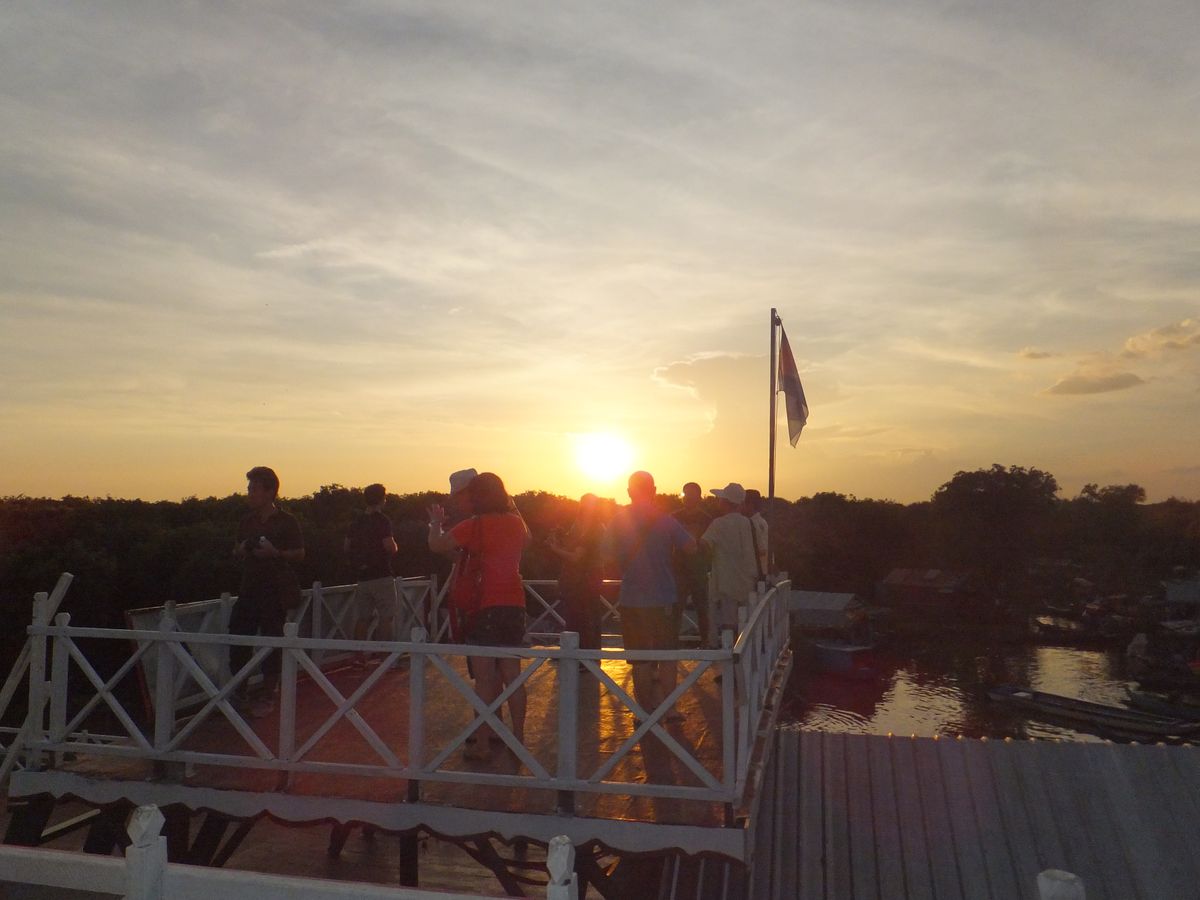 トレンサップ湖では、ボートで沖に出る手前の水上土産物屋で夕日の時間待ちといわれ、しばし「放置」されていましたが、その後どうするのかの案内がない上に、そこでは建物があり夕日が見えないので、同じグループの方と相談し、ガイドさんを探して夕日はどこから見る予定なのか聞くことにしました。このまま見る、とのことでしたので、ここでは夕日が見えないので沖で見たいとお願いしてそのようにしてもらいました。結果オーライですが夕日鑑賞のツアーなので、当初からきちんと見える場所の采配にしてもらいたかったです。
