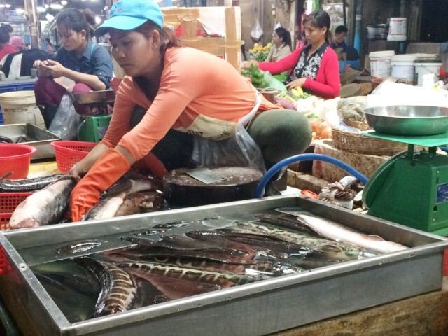 当日は日本人の方10人ほどで大型バンに乗り込みトンレサップ湖へ向かいました。道中、時間を潰すためにオールドマーケットで買い物タイムがありましたが、ガイドのイシダさんが気を利かせてくれて、色々と地元の人たちが食べる食材などを一つ一つ説明しながら回ってくれました。