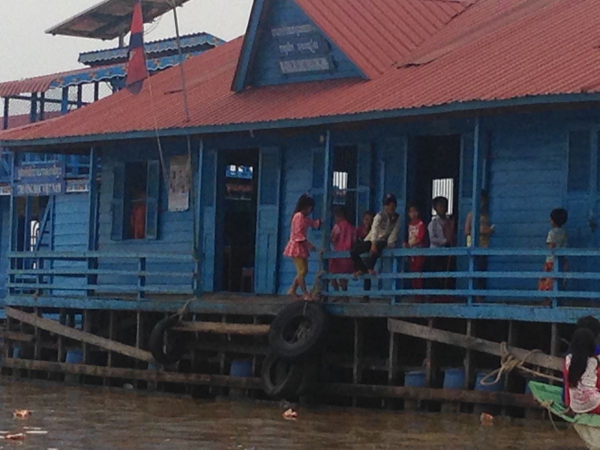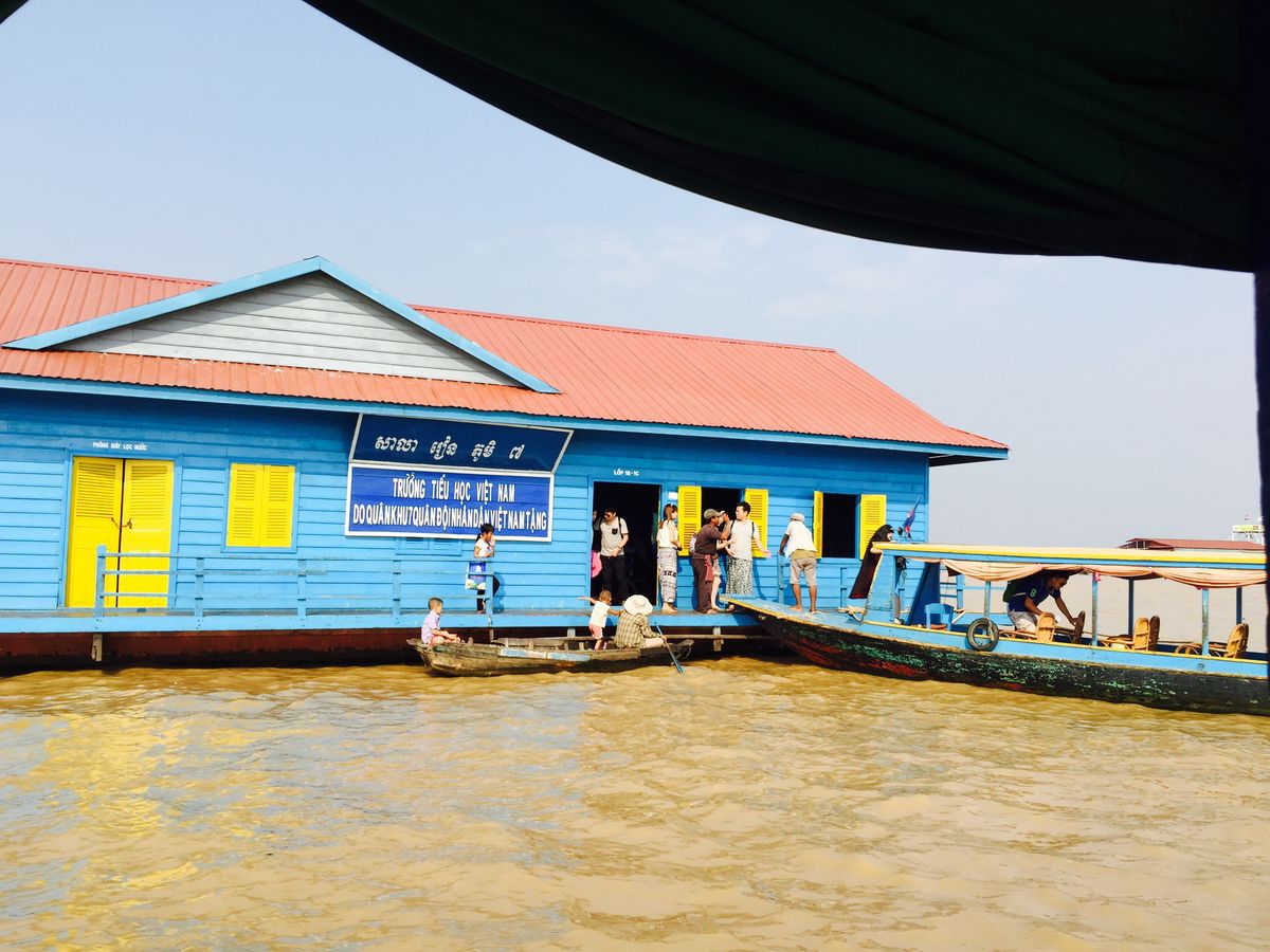 トレンサップ湖に着くと、水上の上にある学校や民家を見る事が出来ました。