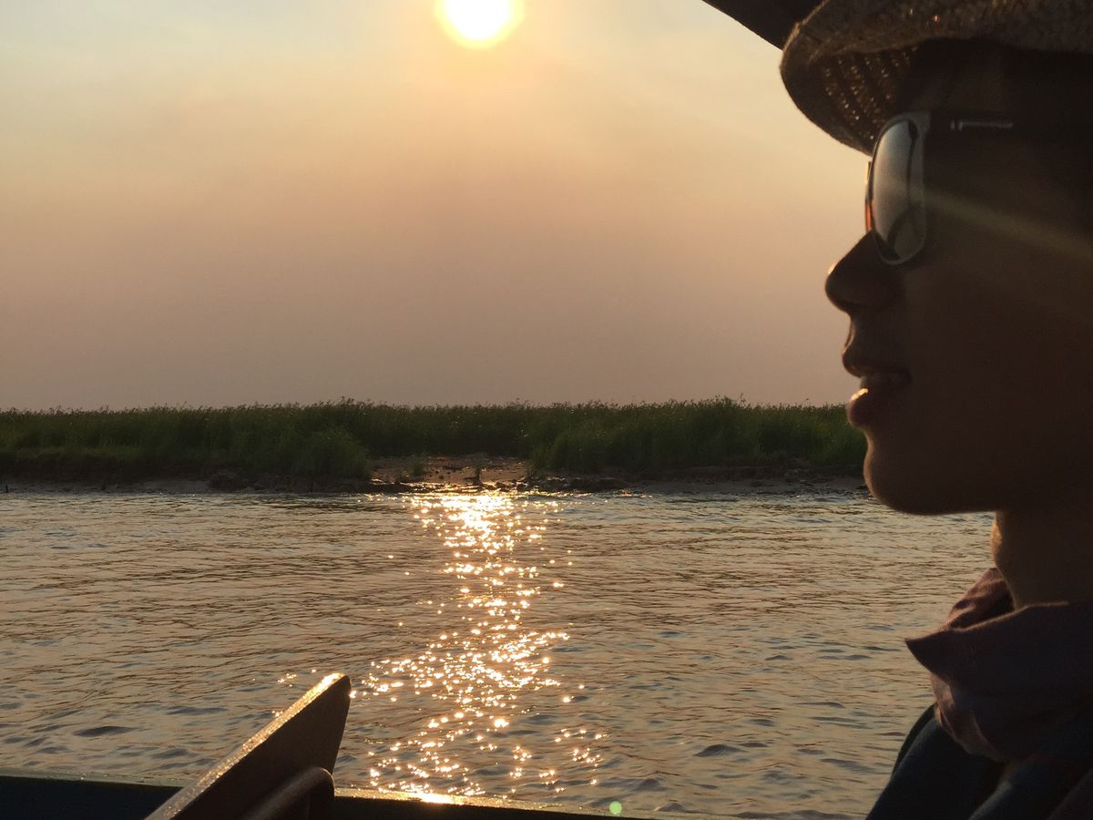 夕日も雲が湖面近くにあってサンセットは見られませんでしたが、水面の輝きがとてもきれいで良かったです。