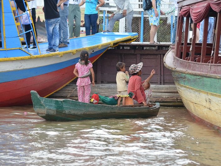 個人的に行って船に乗り、湖上生活している子供たちのために米を買ってくれとせがまれた、という話を聞いたので、ツアーで行って良かったです。曇っていたので残念ながら夕日はあまりよく見えませんでした。カルチャーショックがありましたが、湖上生活者の様子が見られたのは貴重な体験でした。