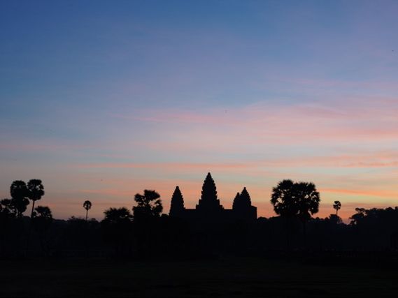暁の紫からオレンジのグラデーションから浮かび上がる遺跡の姿は美しかったです。
