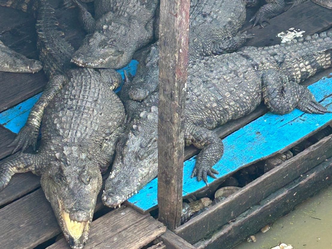 途中で水上のスーパーマーケットによって、飼育されてるワニを見れます。お土産などもそこで買えます。いまコロナ明けで観光客が回復してないのでぜひ何か買ってあげてください!