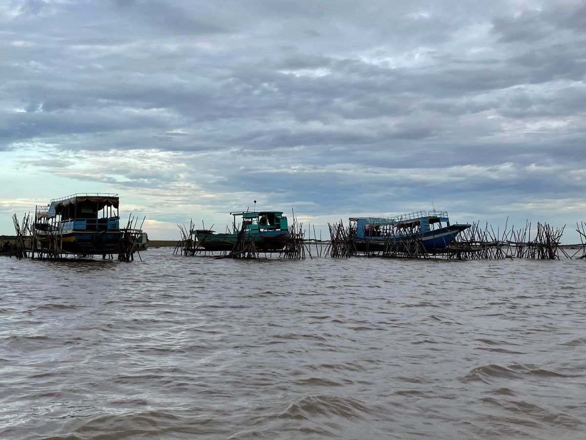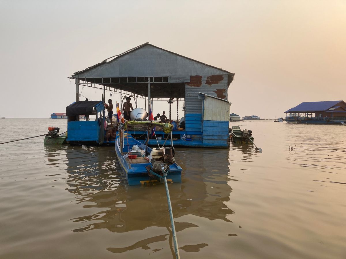 現在は乾季の真っ只中ですので訪問された際の湖の水位はかなり低い状態だったと思いますが、10月あたりになってきますと雨季の時期に降った雨をため込んで湖水面積が大幅に広くなります。それにつれて、水上集落も場所を移動するんですよ。