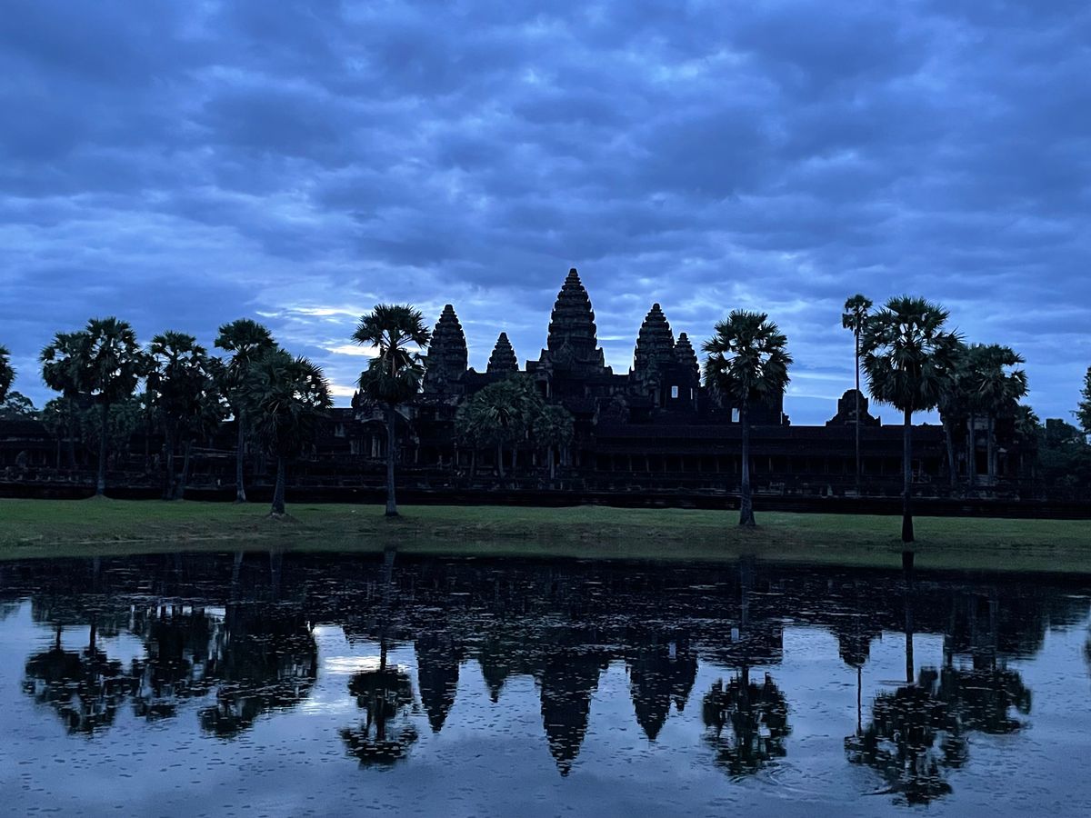 朝の4時半に出発して、5時にアンコールワットに入り、池の前で朝日を待機します。
