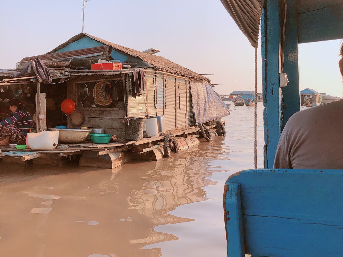 乾季に行ったのですが、船着き場からトンレサップ湖まで運河を延々と進み、30分かけてやっと到着。水上の家をじっくり見ることもなく、小島で降ろされ、数十分滞在。それで終わりです。帰りも運河で30分かけて帰ります。