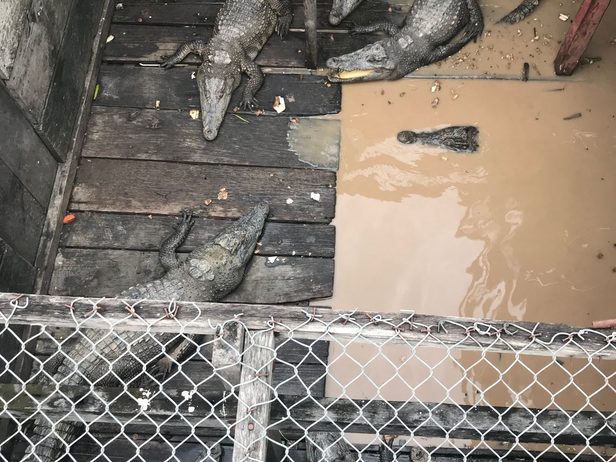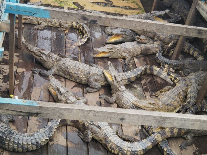 雨季でしたが天気も良く、風が気持ち良かったです。西洋人が多かったです。雨季はコーヒーミルク色で、時期により湖の色や水位も違うそうです。高床式住宅が周囲にあり、学校、船の修理工場、教会などありました。携帯電話の電波塔や店舗ではワニや剥製、ワニ肉のジャーキーみたいなものもガイドさんに教えてもらいました。