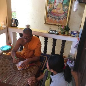トゥクトゥクに乗って行き、僧侶のような格好をした方に占っていただきました。