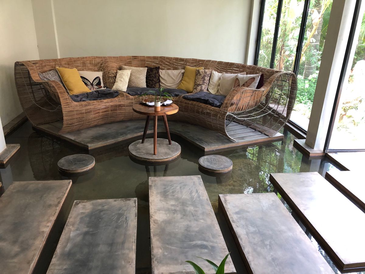真っ暗から蒼から金がかる紅に空の色が変わっていく中でのヨガは素晴らしかったです。蓮の池や山々の風景やちょうどお盆の最終日だったとかで、近所の寺院での夜明け前からのお経とガムランのような音楽、更に虫の声や鶏、牛などの声などが混じり合い幻想的で非常に心地良いものでした。
