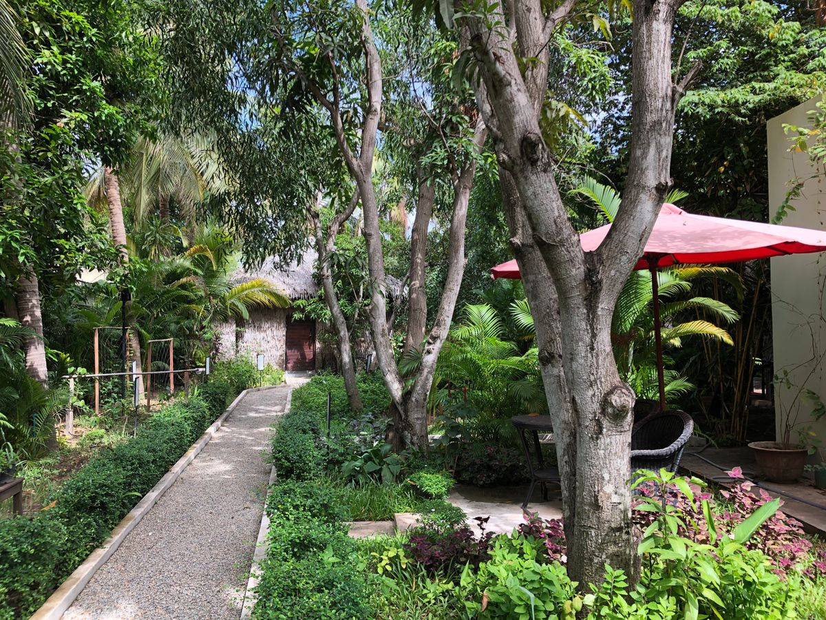 チャンレイツリーランチ:1名参加で居心地が悪いかと思いましたが、全くそんなことはありませんでした。メニューは①おつまみ?にバナナチップス②アミューズ(きゅうりとフルーツのサラダ)③生春巻き④挽肉のココナツカレーとおこげ、やさいのフリッター⑤ロックラック⑥アモック⑦モチ米とフルーツのココナツミルクがけ。とてもおいしくて、しかも代表的なクメール料理を網羅してあり、大満足です。