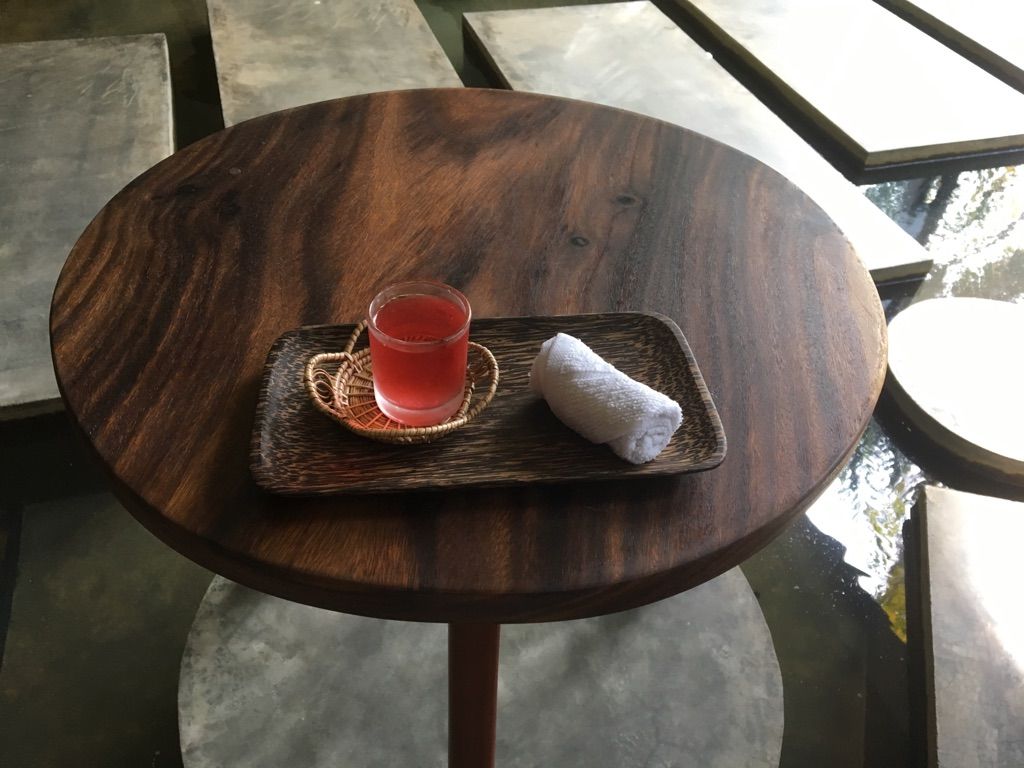 着いたら日本人スタッフがおりとても安心しました。とってもきれいなウェイティングルームでハイビスカスティー、パイナップルシェイクのウェルカムドリンクをいただきながら、体質や体調などの簡単なアンケートと、スパの同意書を記入しました。アンケートの結果に合ったオイルでマッサージしていただきました☆