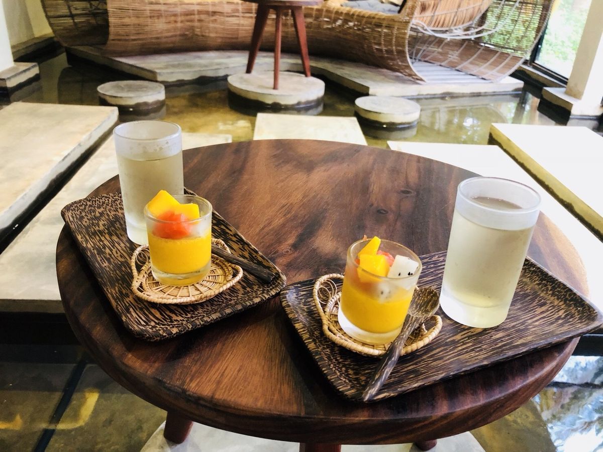 ウェイティングルームに戻ると、冷たいハーブティーとマンゴープリンが用意されていて最高でした!