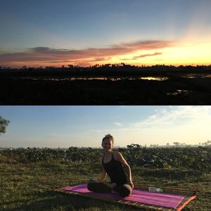 畑の中で、インド人先生の指導のもとヨガをやりました。天気もよく、朝日も綺麗に見えて、リラックスした中でのヨガはとってもスッキリ!!朝日が出てくると気温も上がり汗をかきながらのヨガも、また気持ちよかったです。ヨガの時に写真を撮っていただけてとても良い思い出になりました。(事前に写真撮影可能かどうかの確認もありました)